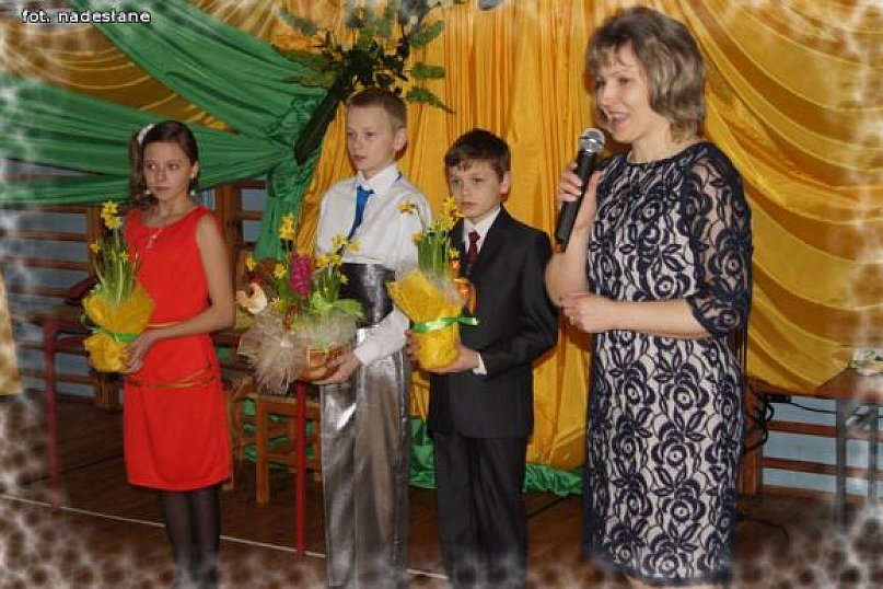Do Szkoły Podstawowej w Szewcach Nadolnych zawitali w czwartek, 11 kwietnia wyjątkowi goście – mieszkańcy sołectwa Szewce Owsiane. Wyjątkowi, bo o wielkim sercu - ofiarowali szkole wysokiej klasy sprzęt nagłaśniający, dzięki któremu przygotowywane uroczystości będą miały odpowiednią oprawę dźwiękową. Wdzięczni nauczyciele i uczniowie przygotowali w podziękowaniu właśnie dla nich program artystyczny, którego scenariusz zbudowany był na bazie atrakcyjnego programu telewizyjnego nadawanego przez TV Szewce Nadolne. Całość zorganizowały samorząd uczniowski i chór szkolny, które prowadzą panie Agnieszka Miedzińska i Anna Zawiślak. Prezenterzy kanału telewizyjnego TV Szewce Nadolne (Klaudia Czarnecka i Krystian Znajewski) zapowiadali kolejne programy. Były wśród nich: wywiad z Miss Szkoły 2000 Afrodytą Pięknolicą oraz reportaż "Sprawy dla reportera" prowadzony przez Elżbietę Jaworowicz. Widzowie mogli również obejrzeć finalistów Turnieju Tańca Towarzyskiego pt.: "Podeptane palce" i uczestników Konkursu Recytatorskiego "Pięknie być człowiekiem". Dla miłośników filmów przygotowano kolejny odcinek serialu "Na dobre i na złe". Tym razem w wersji pantomimicznej. W humorystycznych scenkach pokazały się dwa małżeństwa: Miss Szkoły 2000 (Dawid Krakowiak) z „utuczonym” pączkami mężem (Mateusz Walczak) oraz kobieta nowoczesna (Patrycja Jatczak) z „potłuczonym” mężem (Tomasz Wąsik). Z tańców turniejowych widzowie obejrzeli walca angielskiego w wykonaniu uczniów klasy IV i VI oraz freestyle (samba + hip hop) drugo- i trzecioklasistów. Widzowie widzowie często klaskali i uśmiechali się.