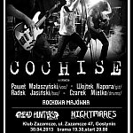 ANTI-VIOLENT AGENCY zaprasza 30 kwietnia na ROCKOWĄ MAJÓWKĘ do Klubu Zazamcze, ul. Zazamcze 47 w Gostyninie. Wystąpi białostocki COCHISE, w którym wokalistą jest znany aktor PAWEŁ MAŁASZYŃSKI. Skład uzupełniają gitarzysta WOJTEK NAPORA, basista RADEK JASIŃSKI oraz perkusista CZAREK MIELKO. Zespół będzie promował swój ostatni album "BACK TO BEGINNING". COCHISE supportować będą poznański HEAD HUNTERS BAND, który został rewelacyjnie przyjęty na poprzednim koncercie w Gostyninie oraz kutnowski NIGHTMARES z gitarzystą TOMASZEM WOJTCZAKIEM i basistą KRZYSZTOFEM WIANKOWSKIM tworzącymi ponad 20 lat temu pierwszy skład NIGHTMARE. Bilety w przedsprzedaży kosztują 20zł, w dniu koncertu bilety będą kosztować 25zł. Rezerwacje : Gostynin tel. 509475521, Kutno tel. 606958240 lub bezpośrednio w CYBERKULTURZE. Wejście godzina 19.30, start 20.00.
