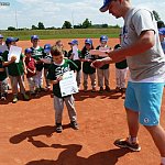 W minioną sobotę i niedzielę obiekty kutnowskiego Centrum Małej Ligi zapełniły się najmłodszymi adeptami gry w baseball i softball. Miejski Klub Sportowy Stal zorganizował festiwal tych dyscyplin sportu dla dziecięcych zespołów z Warszawy, Bydgoszczy, Osielska i Kutna. Sobotnie spotkania otworzyła 25- osobowa grupa 10-latków ze Szkoły Podstawowej Nr 1 im. Tadeusza Kościuszki w Kutnie, która prowadzona przez trenera Andrzeja Pietrzaka dała pokaz aktywnego treningu i gry sparingowej. Po sąsiedzku z baseballistami podobne zajęcia realizowały dziewczęta z sekcji softballu kutnowskiego klubu. Trening młodych softballistek prowadzili trener Marcin Durka i kierownik drużyny Piotr Grzanowski. Niewątpliwym przebojem weekendu były jednak mecze najmłodszych. Naprzeciw siebie stanęły zespoły sześcio i siedmiolatków z Kutna i Bydgoszczy. Tak młodych zespołów polskie boiska w swojej kilkudziesięcioletniej historii chyba jeszcze nie oglądały. Licznie zebrani widzowie mogli podziwiać efekt rocznej pracy trenerów z Kutna – Mariusza Grzanowskiego i Jakuba Dyszkiewicza oraz Beaty Henke z Bydgoszczy. Śpieszymy poinformować, że pomimo młodego wieku bohaterów sportowych zmagań - były to ciekawe zawody. Młodzi teebaliści a także teeballistki z Kutna i Bydgoszczy odbijali piłki i biegali po bazach – jak się patrzy. Sędziowie musieli prosić rodziców o pomoc w liczeniu wyniku. Wedle najbardziej wiarygodnych źródeł możemy potwierdzić, że po dwóch godzinach gry zanotowano remis - 28 : 28. W tych meczach nie wynik był jednak najważniejszy, powszechnie uznano, że zwycięzcami byli wszyscy uczestnicy, ich opiekunowie i zapewne obecni w komplecie rodzice maluchów.