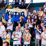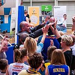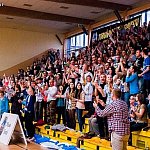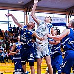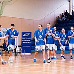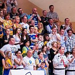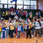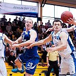 W pierwszym meczu o trzecie miejsce I ligi koszykówki rozegranym w Toruniu drużyna AZS WSGK Polfarmex Kutno zremisowała z PC SIDEn Toruń 73:73. Drugie spotkanie odbędzie się w Kutnie 11 maja i będzie to ostatni występ kutnowskich koszykarzy w tym sezonie. Zwycięzca dwumeczu zdobędzie brązowe medale. PC SIDEn Toruń - AZS WSGK Polfarmex Kutno 73:73 (19:17, 20:17, 18:24, 16:15) AZS: Bręk 23, Jakóbczyk 12, Glabas 13, Dłuski 6, Małecki 6, Rduch 6, Szwed 5, Kwiatkowski 2. Początek pierwszej kwarty meczu należał do zawodników z Torunia. Pierwsze punkty dla swojej drużyny zdobył Aleksander Perka, trafiając celnie za 2 pkt., następnie Łukasz Żytko trafia celnie za 3 pkt. Po dwóch minutach rywalizacji pięciopunktową przewagę mieli gospodarze. Akademicy skutecznie zapunktowali dopiero po trzech minutach pierwszej części gry. Celny rzut za 2 pkt. Krzysztofa Jakóbczyka zapoczątkował odrabianie pierwszych strat w meczu. Wynik coraz szybciej zbliżał się do remisu i już po 5 minutach gry było 10:8 dla Sidenu. Końcówka tej części gry to świetna gra Mateusza Szweda, który zalicza serię 5 punktów w ciągu niespławna jednej minuty. Pierwsza kwarta kończy się wynikiem 19:17 dla gospodarzy. Po niemrawym początku Akademików w pierwszej kwarcie, druga cześć meczu zaczęła się o wiele lepiej. Łukasz Kwiatkowski celnie trafia z wyskoku za 2 pkt., doprowadzając do pierwszego remisu, ale nie na długo gdyż przeciwnicy nie pozostają obojętni i odpowiadają punktami z punkty. Pierwsza połowa drugiej kwarty to zacięta i wyrównana walka obu zespołów. Wynik obu zespołów oscyluje wokół remisu. Lecz w drugiej części tej kwarty to zawodnicy z Torunia odskoczyli od Akademików i na półtrorej minuty przed gwizdkiem sędziego kończącym tę cześć gry wysunęli się na siedmiopunktowe prowadzenie. Tuż przed zakończeniem Wojtek Glabas i Grzegorz Małecki trafiają celnie zza linii 6,75 m odrabiając 6 punktów. Ostatnia akcja jednak należy do Sławomira Sikory, który 2 sekundy przed końcem drugiej kwarty celnie trafia za 2 pkt ustalając wynik na koniec drugiej kwarty na 39:34.