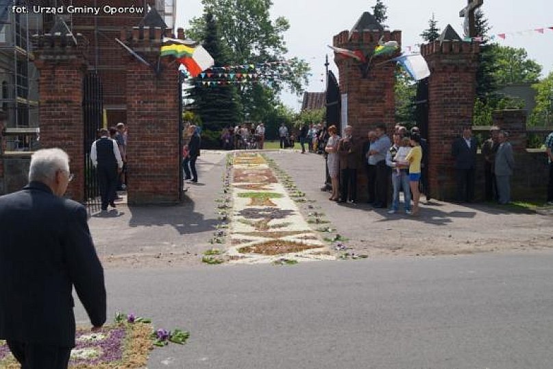 60 mieszkańców Gminy Oporów na Święto Bożego Ciała ułożyło dywan kwiatowy od klasztoru Ojców Paulinów do bramy wejściowej Zamku-Muzeum tj. na długości ok. 600 m. Efekty ich pracy, którą rozpoczęli o godz. 4 rano możecie państwo zobaczyć w galerii zdjęć.