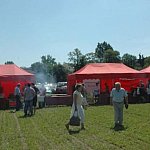 Dni Pola w Strzelcach organizowane w tym roku przez Hodowlę Roślin Strzelce Grupa IHAR oraz BASF Polska cieszyły się dziś dużym zainteresowaniem. Aby obejrzeć najnowszy sprzęt roliniczy oraz polskie rośliny uprawne przyjechali do Strzelec rolnicy z regionu, jak również z całej Polski. Imprezą interesowały się również branżowe media ogólnopolskie. Pogoda niewątpliwie była sprzymierzeńcem organizatorów, bo słońce sprzyjało relaksowi i zabawie. Dla uczestników Dni Pola przygotowano wyśmienity poczęstunek oraz konkursy z nagrodami. Można było sprawdzić swoją siłę uderzając młotem. Prym wiódł pan Stanisław, który na 999 jednostek zdobył 946, również udało mu się nieźle wypaść w strzelaniu z procy do chwastów. Rolnicy odpowiadali również w konkursach na pytania merytoryczne, o terminy zasiewów, o środki zapobiegania chwastom i rodzaje nawozów. Producenci sprzętu rolniczego wystawili m.in. ciągniki od 20 do ponad 100 konnych, ładowacze, wózki widłowe, kosiarki, zgrabiarki, prasy, siewniki, traktory, opryskiwacze, agregaty uprawne.