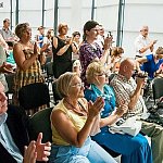 Do świtu, do oporu, z przytupem trwała zabawa najwytrwalszych gości IX Festiwalu "Złoty Środek Poezji" w Kutnie na dziedzińcu Pałacu Saskiego, pod rozłożystym, pięknym orzechem. Wcześniej zgromadzoną w Kutnowskim Domu Kultury publiczność rozruszał DE PRESS. Iza Kawczńska, poetka, właścicielka antykwariatu w Łodzi i rolniczka śpiewała do Andrzeja Dziubka: "Nazbirałam jagód dzban/Pódźze Jasiu to Ci dom/Dom Ci jagód ze dzbanecka/Bo jo Cie kochom. No i się wydało. Oj działo się, działo. Rytmiczne, żywiołowe, folk-rockowe utwory dla tych, którzy wcześniej nie znali wykonań Andrzeja Dziubka były mocną dawką niezwykle pozytywnej energii, a ci którzy je znali znakomicie, wspólnie śpiewali z frontmanem zespołu. Zespół zresztą tak został wywołany na scenę, głośnym śpiewem z widowni. Tańce pod sceną trwały przez cały koncert, trudno zresztą było usiedzieć. De press bisował w Kutnie dwa razy. Na koniec Katarzyna Kowalewska, prezes kutnowskiego Hospicjum wręczyła Dziubkowi kwiaty. Trzeba tutaj podkreślić, że wstęp na wszystkie wydarzenia festiwalowe jest bezpłatny. Przedsięwzięcie jest projektem non-profit, jednak organizator festiwalu - Kutnowski Dom Kultury zaproponował aby zaoszczędzone w ten sposób pieniądze widzowie przekazali na potrzeby Stowarzyszenia „Hospicjum Kutnowskie”, które jest społecznym partnerem poetyckiej imprezy. I tak się stało, wolontariuszki zbierały datki podczas koncertu. A co działo się jeszcze podczas drugiego dnia festiwalu? Swoje nagrody, jak pisaliśmy wczoraj, odebrali laureaci i IX Ogólnopolskiego Konkursu Literackiego „Złoty Środek Poezji” Kutno 2013 na najlepszy poetycki debiut książkowy roku 2012. Nagrody poetom o puli 12 000 zł wręczył Zbigniew Wdowiak, zastępca prezydenta Kutna. Na rozstrzygnięciu stawili się jurorzy Karol Maliszewski, poeta i krytyk literacki związany z wrocławską "Odrą", nauczyciel, wykładowca - przewodniczący konkursu oraz Krzysztof Kuczkowski - poeta, autor szkiców, recenzji muzycznych i literackich, juror wielu konkursów poetyckich. Od 1993 redaktor naczelny dwumiesięcznika literackiego"Topos", inicjator Ogólnopolskiego Konkursu Poetyckiego im. Rainera Marii Rilkego, a także organizator festiwali poezji w Sopocie. Janusz Radwański, autor "Księgi wyjścia awaryjnego" najlepszego debiutu poetyckiego roku 2012 złożył podpis na Ścianie Poetów, która jak wszyscy zauważyli, właśnie się skończyła. Gdzie będzie zatem dziesiąty mural podczas jubileuszowego Festiwalu? O tym wkrótce. Lyrik von Jetzt to tytuł spotkania z poetami niemieckimi młodego pokolenia Uljaną Wolf (1979 r.) i Janem Wagnerem (1971 r.). Prowadził je Tadeusz Dąbrowski. Wiersze Wolf przetłumaczono na kilkanaście języków. Wraz z Christianem Hawkeyem opracowała zbiór sonetów „Sonne From Ort” (kookbooks 2012). Mieszka w Berlinie i na Brooklynie. Natomiast Wagner jest poetą i tłumaczem poezji anglojęzycznej. Było to regularne spotkanie autorskie, z prezentacjami twórczości i jej tłumaczeń. Potem "Apetyt na poezję" miała Anna Chodakowska, która już przed inscenizacją rozdawała autografy. Na festiwalu w Kutnie gościła ona drugi raz i jak poprzednim razem występ śpiewającej aktorki zachwycił publiczność zgromadzoną w Kawiarni KDK. Wraz z Romanem Ziemlańskim Chodakowska zaprezentowała wiersze Pawła Bartłomieja Greca, patrona Ogólnopolskiego Otwartego Konkursu Jednego Wiersza w Kutnie. Obecna na sali matka zmarłego poety nie kryła wzruszenia zarówno z faktu nadania imienia jej syna kutnowskiemu konkursowi, jak i interpretacji jego wierszy wykonanych przez artystów. I wreszcie przyszedł moment na rozstrzygnięcie "małego" konkursu. 65 poetów zdecydowało się przeczytać swoje wiersze w VIII Ogólnopolskim Otwartym Konkursie Jednego Wiersza im. Pawła Bartłomieja Greca. Jak mówi Marek K.E. Baczewski werdykt nie był prostą decyzją. - Wysłuchanie tak potężnej dawki poezji dla nas jurorów jest nie lada wyzwaniem. Oczywiście jak w każdym turnieju spory toczyliśmy, ale dyskuje o poezji, to najważniejsze punkty programu takich imprez - mówił przewodniczący jury Marek K.E. Baczewski.