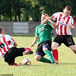 Krośniewianka Krośniewice awansowała do Ligi Okręgowej. Była najlepszą drużyną w III grupie A klasy w sezonie 2012/13, i to krośniewiczanie po ostatniej kolejce mogli otwierać szampany i cieszyć się z awansu. Losy gry w Lidze Okręgowej ważyły się do ostatniej kolejki, ba, prawie do ostatniej minuty meczu, w którym Krośniewianka pokonała 3:2 Dąbrowiankę Dąbrowice. Przed ostatnią kolejką w A klasie sytuacja była jasna i klarowana. Krośniewianka i GKS Bedlno miały tyle samo punktów. O kolejności w tabeli decydował lepszy bilans bezpośrednich meczów. A, ten krośniewiczanie mieli lepszy, wygrywając w Bedlnie 4:0 i przegrywając 2:3 w Krośniewicach. Do szczęścia krośniewiczanom potrzebna była wygrana z Dąbrowianką, bo chyba mało kto przypuszczała, że piłkarze z Bedlna stracą punkty w Świnicach Warckich. Dąbrowianka to bardzo dobry zespół, który w Krośniewicach zagrał z taką determinacją i walczył tak ambitnie, jakby od tego spotkania miał decydować jej ligowy byt. Jeszcze raz okazało się, że zasada "bij mistrza" obowiązuje na wszystkich szczeblach rozgrywek. Drużyna z Krośniewic zaczęła mecz bardzo nerwowo. Mnożyły sie niecelne podania, a piłkarze zamiast skoncentrować się nad grą, dyskutowali ze sobą i wytykali sobie błędy. Pierwszy strzelał Szymczak, ale słabe uderzenie bez problemu obronił Krakos. Po chwili obrońcy gości zablokowali strzał Dopieralskiego, który kończył akcje Florczaka i Ł. Hartwicha. Krośniewiczanie mieli optyczną przewagę, ale nic wielkiego z tego nie wynikało. Dąbrowianka koncentrowała się na destrukcji i przeprowadzaniu szybkich kontr. W 7. minucie w narożniku pola karnego Krośniewianki piłkę otrzymał Dominowski. Piłkarz Dąbrowianki chciał dośrodkować, ale w ostatnim momencie zauważył, że Błaszczyk wychodzi do dośrodkowania zostawiając krótki słupek. Strzelił tam, gdzie krośniewickiego bramkarza nie było. 1:0 i zamarły szczelnie wypełnione trybuny stadionu. To nie tak przecież miało być. Przecież to piłkarze Krośniewianki mieli strzelać gole.