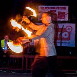 Przed północą zakończyła się pierwsza odsłona czwartej edycji ognistego festiwalu. Oczywiście najwięcej emocji wzbudziły konkursowe prezentacje solistów. Na Festiwal Fireproof w Kutnie przyjechali artyści z całej Polski. Wśród nich nie brakuje uczestników, którzy po raz kolejny walczą o nagrodę na tym festiwalu. Z 17 solistów organizatorzy wybrali 7 prezentacji. Dziś, w sobotę zobaczymy grupy, jak i usłyszymy werdykt, który zostanie ogłoszony na scenie w parku Traugutta o godz. 23.20. W piątek po paradzie przed wisienką na torcie kutnowskiego festiwalu czyli pokazami teatru i tańca z ogniem wystąpił zespół The Dox, który zagrał polskie i światowe covery rockowe z lat 70, 80 i 90. Gostynińska formacja działa na rynku muzycznym od kilkunastu lat, tak więc kutnowska publiczność znakomicie bawiła się przy standardach muzycznych minionych dekad. Na scenie w parku zaprezentowała się również Szkoła Tańca Alibi Doroty Ciołkowskiej oraz grupa dorosłych, tańczących Zumbę w Kutnowskim Domu Kultury, która podniosła jeszcze wyżej temperaturę imprezy. Program na dziś: plac Piłsudskiego 11.00 – 14.00 Kiermasz talentów - warsztaty sprejowania park Traugutta 15.00 – 17.00 Otwarte Warsztaty Kuglarskie, strefa dmuchanych zabawek organizowana przez firmę Tęczowo 20.00 Początek drugiego dnia festiwalu 20.10 Koncert zespołu Cochise 21.30 Pokazy konkursowe grup 23.00 Koncert zespołu Poter TTS