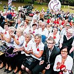Nie sposób pokazać w jednej galerii zdjęć tego co działo się dziś na Festiwalu "Na ludowo w mieście róż" w kutnowskim parku. Dodajemy też słów kilka o nagrodzonych dziś zespołach. Zespół Śpiewaczy z Boguszyc istnieje już od 8 lat. Wykonuje a'capella stare pieśni ludowe, przekazywane przez najstarszych mieszkańców okolicznych miejscowości, a tradycje ludowe kultywuje w różnych przedstawieniach obrzędowych. - Pasją do muzyki ludowej zaraziła nas Maria Jolanta Hein, która stworzyła zespół. Na swoim koncie mamy kilka sukcesów - mówią o sobie członkowie zespołu.- Najważniejszym osiągnięciem jak do tej pory było dla nas zdobycie pierwszego miejsca na 45 Ogólnopolskim Festiwalu Kapel i Śpiewaków Ludowych w Kazimierzu Dolnym nad Wisłą w 2011 r. Członkowie zespołu: Klaudia Aleksandrzak, Monika Bednarek ,Paulina Kobierska, Katarzyna Kozik, Magda Kozik, Natalia Kozik, Rafał Kozik, Sylwia Kozik, Karolina Pietruchowska. "Chabry" i "Czeremcha" wywodzą się z Wałcza i dobrze się znają. - Po części to „Czeremsze” zespół „Chabry” zawdzięcza nazwę, bo skoro jeden nazwę wziął od drzewa, to drugi mógł wybrać sobie kwiat polny. Chaber – piękny chwast w polskich zbożach, z którego wytwarza się nie tylko leki, ale także nalewki. Niektóre śpiewaczki z przymrużeniem oka wyznały, że w strojach w kolorze tych kwiatów wygląda się... smuklej - pisze Anna Cebula w "Gminie" Magazynie Samorządowym.