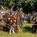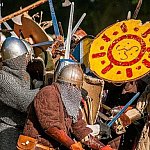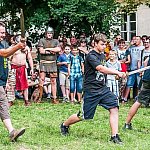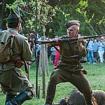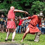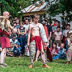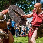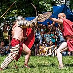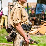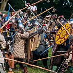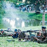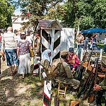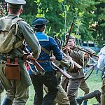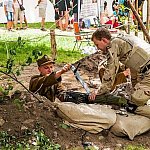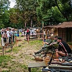 Trwa IV Odyseja Historyczna. Na Zlot Grup Rekonstrukcji Historycznych w Leszczynku przybyło w tym roku około 60 grup z całej Polski. Cieszy duża liczba zupełnie nowych, które pojawiły się na imprezie pierwszy raz. I tak razem z Walhallą Inscenizacje Historyczne, która odtwarzała szkołę gladiatorów i legiony rzymskie cofnęliśmy się aż do czasów Imperium. Mogliśmy podziwiać walki gladiatorów oraz przyjrzeć się odtwórcom legionistów rzymskich, którzy zawojowali starożytną Europę. Następną epoką w dziejach ludzkości było średniowiecze- ludność tej epoki w Leszczynku reprezentowała liczna grupa rekonstruktorów, od Wikingów przez wojów słowiańskich z IX w. po rycerzy Zakonu Krzyżackiego. Dla zebranej publiczności wystąpiła Cives Glogoviae 1253 z średniowiecznym teatrzykiem kukiełkowym i przedstawieniem "Opowieść o Don Gajferrosie i pięknej Melisandre". Była to klasyczna chanson de geste o miłości rycerza do nadobnej panienki, z przygodami- poszukiwaniem porwanej Melisandre i odbiciu ukochanej, osadzonej w wieży z rąk Złego Maura. W międzyczasie damski chór Grazzioso prezentował pieśni świeckie i kościelne, w językach włoskim i francuskim, pochodzące z końcówki średniowiecza i początku epoki renesansu. Panie swymi głosami oczarowały zebraną pod sceną widownię. Swoje miejsce w Leszczynku mieli także starzy znajomi oragnizatora Odysei Historycznej -Stowarzyszenia Historycznego Pułk 37 - grupy przedstawiające żołnierzy I i II wojny światowej, zarówno polskich, niemieckich, jak i sowieckich. Dwie pierwsze grupy wzięły udział w inscenizacji Bitwy nad Bzurą. Polacy dzielnie bronili starannie umocnionych pozycji, nawet przechodzili do natarcia. Nie bali się ognia wrogiej artylerii. Mimo to przytłoczyła ich przewaga liczebna wroga, który po odważnym szturmie zdobył okop. Pojawiły się także grupa rekonstruująca 14 Pułk Strzelców Syberyjskich Przasnysz 1915 oraz grupa z dioramą batalionu Norge frontu północnego z 1944 roku. Wśród grup, które pierwszy raz pojawiły się na Odysei Historycznej była Grupa Rekonstrukcji Historycznej "Hindukush" zajmująca się odtwarzaniem afgańskich mudżahedinów z okresu walk z Sowietami w latach 1979-1989. W skład ich uzbrojenia wchodziły karabiny niekiedy ozdabiane koralikami, broń z I i II wojny światowej, a także XIX wieczne pistolety kapiszonowe. Na terenie Leszczynka można było spotkać Indian w ozdobnych pióropuszach wytwarzających kolorowe ozdoby. Pojawili się także Aborygeni dmiący w wielki tuby. Pokazy szermiercze urządziła Grupa Rekonstrukcji Historycznych III Okręgu Policji Państwowej- komisariat w Radomiu, walcząc na karabiny bagnetowe i na florety.