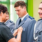 Święto Policji było dziś okazją do przypomnienia o odznaczeniach, jakie kutnowscy mundurowi oraz współpracujące z policją służby i samorządy otrzymali od Prezydenta RP. W Starostwie Powiatowym w Kutnie mianowania na stopnie w dzisiejszym dniu odebrali powiatowi policjanci- dwie osoby na oficera, 36 na aspiranta, 33 na podoficera i 8 na szeregowych. Złoty medal medal za długoletnią służbę nadany przez Prezydenta RP otrzymał mł. insp. Jan Kuropatwa Komendant Komendy Powiatowej Policji w Kutnie. Srebrny medal za długoletnią służbę: kom. Radosław Bieniek, asp. Andrzej Góralski, podinsp. Piotr Sikorski, asp. szt. Karol Szydłwski, asp. szt. Krzysztof Kaczmarek, a medal brązowy za długoletnią służbę: asp. Robert Kędziora. Medal srebrny za zasługi dla policji otrzymali mł. bryg. mgr inż. Marek Myszkowski -Komendant Powiatowy Państwowej Straży Pożarnej w Kutnie, burmistrz Krośniewic Julianna Barbara Herman, Stanisława Bytner - policjantka. Dowódca uroczystości podkom. Dariusz Wójkowski złożył meldunek Komendantowi i poczet sztandarowy w składzie - dowódca st. sierżant Łukasz Sierka, sztandarowy sierżant Maciej Rybicki, asystujący st. sierżant Dawid Wiśniewski- pojawił się na sali. Z kolei asp. Paweł Witczak oficer prasowy, prowadzący uroczystość wspomniał, że sztandar kutnowskiej komendy trzy lata temu został ufundowany przez społeczność ziemi kutnowskiej. Ciepłe słowa do swoich policjantów skierował mł. insp. Jan Kuropatwa Komendant Komendy Powiatowej Policji w Kutnie. Na sali nie zabrakło też byłego komendanta Krzysztofa Michalskiego, kapelana służb munudrowych księdza Jana Dobrodzieja i wielu gości, którzy wyrazili swoją wdzięczność za oddanie policyjnej pracy i pieczę nad miastem i całym powiatem. - Dzisiejsze Święto pozwala mi publicznie podziękować moim podopiecznym, policjantkom i policjantom, pracownikom cywilnym komendy za wkład w rozwój naszej komendy, za ich godną służbę i pracę oraz oddanie dla drugiego człowieka - mówił mł. insp. Jan Kuropatwa.