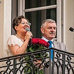 Wczoraj na placu J. Piłsudskiego, przed Muzeum Regionalnym w Kutnie odbył się koncert plenerowy "W piękny letni wieczór" otwierający IV Letni Festiwal Muzyczny Kutno 2013 pod patronatem eKutno.pl. Najpierw rozbrzmiał potężny baryton Zbigniewa Maciasa, który zaśpiewał "W taki piękny wieczór" z musicalu "Południowy Pacyfik". Następnie na balkon Muzeum Regionalnego w Kutnie wyszli Dyrektor Festiwalu prof. dr hab. Anna Jeremus- Lewandowska i Prezydent Kutna Zbigniew Burzyński, którzy przywitali licznie zgromadzoną publiczność i oficjalnie otworzyć IV Letni Festiwal Muzyczny. - Dziękuję, że przyszliście na nasz koncert, by znów być z nami - powiedziała Dyrektor Festiwalu. Następnie przed publicznością wystąpiła Jolanta Bibel dysponująca rzadkim mezzosopranem dramatycznym. Zaprezentowała dwie arie - córki Miecznika ze "Strasznego Dworu" i Rokiczany "Jak będę królową" z "Rokiczany", obie Stanisława Moniuszki. Artystce towarzyszyła Ewa Szpakowska grająca na fortepianie. Później swój tenor o niezwykłej mocy i brzemieniu zaprezentował Krzysztof Bednarek, wykonując dumkę Jontka z "Halki" także Moniuszki. Zaraz potem wystąpił w duecie z Anną Jeremus- Lewandowską wykonując "La ci darem la mano" z opery "Don Giovanni" Wolfganga Amadeusza Mozarta, gdzie jako tytułowy bohater uwodził Zerlinę. Nie trzeba znać języków obcych by móc poczuć siłę tej wspaniałej muzyki. Kolejny kutnowskiej publiczności zaprezentował się wirtuoz akordeonu Leszek Kołodziejski w solowym wykonaniu na tymże instrumencie "Divertimento" Andre Astiera porywając serca widzów. Zaraz potem z arią Kalafa "Nessun dorma" z opery "Turandot", namiętnie śpiewanej przez Pavarottiego, wystąpił Krzysztof Bednarek. Potem Bibel przepięknie wykonała znaną wszystkim Habanerę z Opery "Carmen" G. Bizeta.