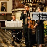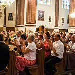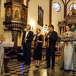 Dzisiaj w Kościele Św. Stanisława na Łąkoszynie w ramach IV Letniego Festiwalu Muzycznego odbył się koncert kameralny "Muzyka niesie nadzieję". Dla zgromadzonej publiczności zaśpiewała sopranistka Iwona Kowalkowska, na skrzypcach zagrał Mariusz Monczak, a to wszystko przy akompaniamencie Jarosława Domagały. - Dzisiaj usłyszycie Państwo koncert natchniony, gdyż utwory sacrum najpiękniej wybrzmiewają w takim miejscu- zapowiedziała Dyrektor Festiwalu Anna Jeremus- Lewandowska. Rozpoczął skrzypek Mariusz Monczak arią na strunie G Jana Sebastiana Bacha ukazując nam swój mistrzowski kunszt. Następnie swój sopran zaprezentowała Iwona Kowalkowska w modlitwie F. Durante "Preghiera". Potem mazurka a-mol Fryderyka Chopina zagrał Jarosław Domagała. Po takim miłym dla ucha zapoznaniu się z artystami widownia nie miała wyboru, musiała ich pokochać, zresztą z wzajemnością. Kolejne występy artystów były coraz lepsze, aria kościelna "Pieta signorie" i aria Lauretty "O miobabbino caro z opery "Gianni Schicchi" Pucciniego w wykonaniu Kowalkowskiej, "Adoracja" Monczaka zdobywały coraz głośniejsze brawa.