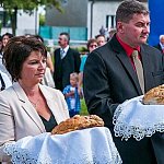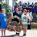 W Szubsku Dużym w gminie Krośniewice, Nowych Ostrowach i Dąbrowicach rolnicy z powiatu kutnowskiego mieli również swoje święto. Dożynkowe pomysłowe barwne wieńce z różnych sołectw przywodziły na myśl bogactwo matki Ziemi i jej owoców. W Gminie Nowe Ostrowy Sołectwo Wola Pierowa oraz Urząd Gminy byli dziś organizatorami Święta Plonów. Starostowie Dożynek w tamtej gminie prowadzą gospodarstwa ponad 25-hektarowe, są wzorowymi rolnikami. - Przyjmij ten bochen chleba z ciężkiej rąk pracy rolników, dziel nim sprawiedliwie aby nikomu go nie zabrakło - Starościna Dożynek przekazała chleb wójtowi Zdzisławowi Kostrzewie. - Będę starał się ze wszystkich sił aby chleba mieszkańcom gminy nie zabrakło - odpowiedział Wójt. Z kolei w Dąbrowicach Święto Plonów miało hasło "Dożynki - stąd jesteśmy". Wójt Małgorzata Stokfisz dziękowała rolnikom za ich ciężką pracę. - Mamym szczęście, naszą gminę ominęły nawałnice, gwałtowne wiatry i powodzie. Dzięki temu ziemia Dąbrowic wydała owoce - mówiła pani Wójt.