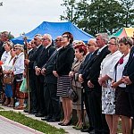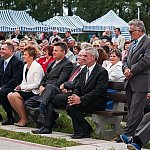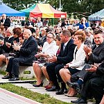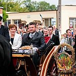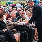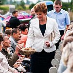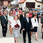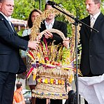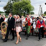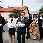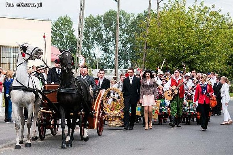 Kapryśna pogoda nie przeszkodziła rolnikom z Gminy Krzyżanów w Święcie Plonów. Korowód dożynkowy i obrzędy tradycyjnie prowadziły dwa sołectwa, tym razem z Rybia i Goliszewa. - Jest nam bardzo miło, że możemy gościć tak zacnych gości Tadeusza Woźniaka, posła na Sejm, Tomasza Jakubowskiego wójta naszej gminy, Zbigniewa Filipiaka i Zdzisława Trawczyńskiego, przedstawicieli samorządu powiatowego, Grzegorza Chojnackiego przewodniczącego Rady Miasta Kutna, księży z naszych parafii - mówiła przewodnicząca. - Dziękujemy dziś rolnikom za trud i pracę, dzięki której nikt nie pozostanie głodny. Życzę wam wszystkim aby nie zabrakło na stołach symbolu dożynek - chleba. Szanujmy rolników, szanujmy ich pracę. - Dziękujemy państwu Mieczysławowi i Halinie Wośko, którzy zawsze wspierają wszystkie nasze gminne imprezy, dziękujemy również innym sponsorom, bez których nie mogłoby się odbyć wiele naszych projektów - mówił Tomasz Jakubowski, wójt Krzyżanowa. - Dziś świętujemy gminne dożynki, które są zwieńczeniem pracy na roli. W naszej gminie przede wszystkim mieszkają całe rodziny, gdzie gospodarstwa przechodzą z pradziada, dziada i ojca na syna. Rodziny głównie utrzymują się z rolniczego trudu. Efekty tej pracy w dużej mierze zależą od pogody. Nie jest więc to łatwe zadanie. Od myszy po cesarza wszyscy żyją z gospodarza, to staropolskie przysłowie jest prawdziwe i uniwersalne, bowiem to dzięki wam rolnikom wiele osób ma pracę w innych branżach. To wy rolnicy z gminy Krzyżanów budujecie drogi, chodniki, utrzymujecie szkoły, ośrodek kultury, urząd gminy, to wasza wiedza jest źródłem wysokiej jakości produkowanych owoców ziemi. Dziękuję wam bardzo i życzę dobrych cen, dobrych plonów. - Krzyżanów zawsze z rozmachem świętuje ten dzień dziękczynienia za to co urodziła ziemia, za to co powstało z pracy rąk ludzkich. Modląc się na uroczystej mszy świętej myśleliśmy o wszystkich ludziach, również tych którym tego chleba brakuje. Rolnicy są solą tej ziemi - przemawiał Tadeusz Woźniak, poseł Solidarnej Polski. - Kiedy są dożynki, to jest ten piękny moment mówimy do siebie ludzkim językiem. Bo tyle jest dziś agresji, agresji w mediach, między politykami. Media pokazują to co najgorsze, dziennikarze mówią, że dobra wiadomość to żadna wiadomość, że trzeba pokazywać zbrodnie i niezwykłe rzeczy. Co to jest za wiadomość gdyby ktoś pokazał kochającą się rodzinę, męża kochającego żonę, ukochane dzieci? No żadna. Ale gdyby mąż żonę zabił z okrucieństwem, to jasne że wszyscy by taką informację podali. Chcemy normalności, takiej miłości i wartości, jakie mieliśmy w domu rodzinnym, takiej którą byśmy przekazali naszym dzieciom aby tak wychować nasze dzieci