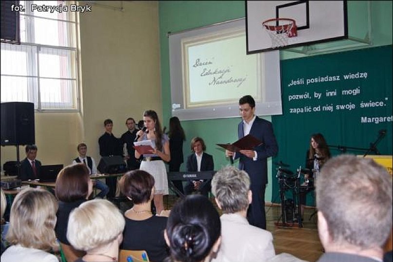 Jak co roku, dzień 14 października obchodzony był w II LO im. J. Kasprowicza w Kutnie w sposób szczególnie uroczysty. W zorganizowanej przez klasę IIIa akademii, brali udział obecni oraz emerytowani pracownicy pedagogiczni i niepedagogiczni. Mieliśmy przyjemność gościć: Państwa Stanisławę i Zbigniewa Korowajskich, Panią Ewę Bończak – Korowajską, Panią Annę Marciniak – Ladko, Panią Halinę Kamińską, Panią Elżbietę Bartosiewicz oraz Pana Zbigniewa Kawkę. Jak przystało na rangę imprezy uczestnikom towarzyszyły chwile dostojne, ale nie zabrakło też momentów dowcipnych, traktujących temat trochę z humorem i przymrużeniem oka. Obchody Dnia Edukacji Narodowej nie mogły pozostać w oderwaniu od przypadającego w tym roku szkolnym Jubileuszu 60 – lecia powstania II LO. Przygotowana na tę okoliczność prezentacja multimedialna oraz fragmenty filmu „W moim śnie” umożliwiły widzom udział w sentymentalnej podróży przez kolejne dekady istnienia placówki, przywołując wiele wspomnień i emocji. Uroczystość stała się też okazją do wręczenia nagród dyrektora. W tym roku otrzymali je następujący nauczyciele: Agnieszka Jaskuła, Dorota Kępińska, Urszula Matusiak, Agnieszka Myśliwiec, Kamil Kobus, Marcin Michalski, Piotr Staniszewski.