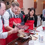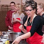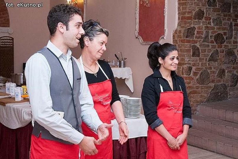 Dziś w Hotelu Rondo prezydenci Kutna oraz przedsiębiorcy gotowali włoskie dania i smakowali wina. Na spotkanie z Italian Cooking School Giuseppiny Piggolato zapraszała restauracja Katarzyny Brauer. Właścicielka ubolewała, że niewielu zaproszonych odpowiedziało na organizowane wspólne gotowanie. No cóż, nie wszyscy czują się aż tak naznaczeni. Z kutnowskimi gośćmi gotowała matka i dwóch synów Giuseppina, Simone, Luca oraz kucharka. Syn Luca odpowiedzialny jest za winnice. Rodzina ma też tłoczarnię oliwy z oliwek. Na początku spotkania Włosi opowiedzieli o domowym tradycyjnym jedzeniu i o tym co będą wspólnie z gośćmi przygotowywać np. kurczaka, ravioli z masłem i ze szpinakiem, wieprzowe polędwiczki z rozmarynem i czosnkiem, a na deser panna cotta z gorzką czekoladą. Potem nastąpiła degustacja win, która miała pomóc, jak stwierdziła pani Katarzyna w porozumieniu się w różnych językach. Jak to ujął jeden z uczestników z dogadaniem się problemów nie będzie, bo po dwóch butelkach wina rozmawia po włosku. Giuseppina nigdy nie uczęszczała do żadnej szkoły gotowania w Toskanii. Nauczyła się gotować od swojej sycylijskiej matki i ciotki, swoje kulinarne umiejętności doskonaliła podczas pracy w restauracjach w całej Toskanii. Giuseppina doszła do perfekcji rozszerzając swoje umiejętności o włoskie kuchnie regionalne. Jeździ teraz po Europie i uczy gotowania w przeróżnych restauracjach.