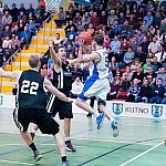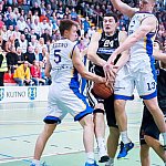 Dziś na sali kutnowskiej podstawówki w szóstej kolejce I ligi koszykówki mężczyzn po zaciętym meczu KKS Polfarmex Kutno pokonał WKK Wrocław 75:61 (22-13 13-11 19-13 21-24). Po pierwszej kwarcie wydawało się, że kutnowski zespół gładko wygra z zawodnikami z Wrocławia lecz okazało się, że goście zmobilizowali siły i walczyli jak równy z równym. Pierwsza kwarta bezapelacyjnie należała do zawodników z Kutna. Pierwsze punkty dla Polfarmexu zdobył Jakub Dłuski celnym lay-upem za 2 pkt. przy asyście Mateusza Bartosza. W pierwszych pięciu minutach zawodnicy WKK Wrocław nie rzucili żadnego punktu natomiast gospodarze rzucili serię 13 punktów. Pierwsze punkty dla Wrocławia zdobył J. Koelner. W drugiej części pierwszej kwarty zawodnicy z Kutna kontrolowali przebieg lecz wrocławianie zaczynali powoli odrabiać punkty. Pierwsza kwarta skończyła się wynikiem 22:13. W drugiej kwarcie zawodnicy z Wrocławia zaczęli agresywniej grać zarówno w ataku, jak i w obronie i przysparzali coraz więcej kłopotów gospodarzom. Wyrównany początek drugiej kwarty pokazał, że nie będzie tak łatwo wygrać jak się wydawało po pierwszej kwarcie. Zawodnicy KKS Polfarmex Kutno utrzymywali przewagę zdobytą w pierwszej części gry oscylującą w granicach 10 punktów. Wrocławianom na moment udało się zbliżyć na 6 oczek do gospodarzy. Wyrównana druga kwarta kończy się wynikiem 35:24.