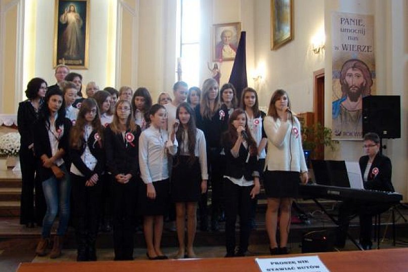 W niedzielę, w przeddzień 11 listopada w Kościele p.w. św. Jadwigi Królowej zapłonął symboliczny ogień. Podczas mszy świętej o godz. 10.30 odbył się koncert, którego inicjatywą było przyłączenie się do ogólnopolskiej akcji społecznej „Ognisko Patriotyzmu” organizowanej przez STOWARZYSZENIE PRZYJACIÓŁ SZKÓŁ KATOLICKICH. Jest to cykliczne wydarzenie, które gromadzi wszystkich, dla których słowo „patriotyzm” nie jest pusto brzmiącym sloganem ! Głównym organizatorem koncertu było Katolickie Liceum, Technikum i Publiczne Gimnazjum Stowarzyszenia w Kutnie – utwory wykonane zostały przez uczniów i nauczycieli tychże szkół a także przez uczniów„Yamahy” - Szkoły Muzycznej w Kutnie, koncert uwieńczył zaś występ Zespołu Kameralnego „CANTABILE” Towarzystwa Przyjaciół Ziemi Kutnowskiej. Mogliśmy usłyszeć miarowo brzmiącą orkiestrę gitarową, nostalgiczną grę na keyboardach oraz wsłuchać się w piękny śpiew z akompaniamentem fletu i pianina. Zaprezentowano 18 najpopularniejszych polskich pieśni wojskowych i patriotycznych z czasów I i II wojny światowej takich jak: HEJ UŁANI! O MÓJ ROZMARYNIE, DESZCZ JESIENNY, WOJENKO,WOJENKO, ROZKWITAJĄ PĄKI BIAŁYCH RÓŻ czy JEST TAKIE MIEJSCE, TAKI KRAJ.. Koncert zakończyło wspólne, chóralne wykonanie „Roty”.