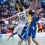 W sobotę w hali sportowej Szkoły Podstawowej nr 9 w Kutnie rozegrano 8. kolejkę I ligi mężczyzn. Zespół KKS Polfarmex Kutno podejmował Intermarche Bricomarche BM Slam Stal Ostrów. Po zaciętym meczu koszykarze z Kutna wysoko wygrali z zespołem z Ostrowa Wielkopolskiego 69:42 (18:14, 20:7, 12:15, 19:6). Pierwsza kwarta zaczęła się pomyślnie dla zespołu z Kutna. Przez pierwsze kilka minut zawodnicy Stali nie mogli rzucić punktów. Przełamanie nadeszło dopiero po 4 minutach lecz Polfarmex zdołał już wtedy rzucić 6 pkt. Ostrowianie zaczęli gonić wynik z dobrym skutkiem. Cztery minuty przed zakończeniem pierwszej ćwiartki doprowadzili do remisu 8:8, a chwilę później po celnym rzucie za 2 punkty Adama Kaczmarzyk goście wyszli na jednopunktowe prowadzenie. Radość kibiców Ostrowa Wielkopolskiego jednak nie trwała długo. Zawodnikom z Kutna udało się odskoczyć w końcówce pierwszej kwarty na 4 punkty. Po pierwszej kwarcie wydawało się, że mecz będzie bardzo wyrównany. Lecz druga kwarta pokazał, że zawodnicy z Kutna są w bardzo dobrej dyspozycji. Podopieczni trenera Krzysztofa Szablowskiego tylko przez pierwsze dwie minuty drugiej kwarty dotrzymywali kroku gospodarzom. Na początku drugiej kwarty trener Jarosław Krysiewicz zdecydował się stopniowo wprowadzać zmienników. Najpierw za Huberta Mazura wszedł na boisko Szymon Rduch, następnie Sławomir Sikora zmienił Norberta Kulona, a po trzech minutach tej części gry na boisko wszedł Jakub Garbacz za Krzysztofa Jakóbczyka i Hubert Pabian zmienił Wojtka Glabasa. Zmiennicy nie zawiedli trenera oraz kibiców. Świetnie zagrał Jakub Garbacz, który rzucił 7 pkt. i Hubert Pabian 6 pkt. Świetnie bronił Mateusz Bartosz, który zaliczył 8 zbiórek w obronie grając od końcówki pierwszej kwarty zmieniając Jakuba Dłuskiego. Druga kwarta zakończyła się wynikiem 38:21. W trzeciej kwarcie na boisku po stronie gospodarzy znów zobaczyliśmy pierwszą piątkę dzisiejszego meczu. Zawodnicy Polfarmex-u Kutno kontrolowali grę na boisku ale zawodnicy z Ostrowa Wielkopolskiego nie dawali za wygraną i próbowali odrabiać straty. Choć wygrali tą część gry to udało im się jedynie odrobić trzy punkty do przewagi gospodarzy z drugiej kwarty. Trzecia kwarta kończy się wynikiem 50:36.