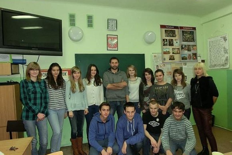 W ramach Kutnowskich Grantów Oświatowych „Sięgaj gdzie wzrok nie sięga” uczniowie Gimnazjum Numer 1 im. A.Mickiewicza w Kutnie realizujący swoją pasję w zajęciach koła teatralnego „Wczoraj i dziś – teatr naszą pasją. Sztuka teatru w Kutnie” spotkali się dziś z aktorem wrocławskiego Teatru Capitol, kutnowianinem Maciejem Maciejewskim. Spotkanie zostało poprzedzone wywiadem z mamą artysty Bożeną Maciejewską, którą młodzież zaprosiła do swojej szkoły, aby dowiedzieć się, jakie były początki kariery pana Macieja. Podczas spotkania młodzież zadawała pytania dotyczące nauki aktora w Szkole Podstawowej nr 7 (obecnie Gimnazjum nr1 w Kutnie), codziennej pracy w teatrze, cech, które według niego są potrzebne, aby osiągnąć sukces w zawodzie aktora. - Wywiad z panem Maćkiem uważam za niezwykle inspirujący. Trochę się obawiałam, ale pan Maciejewski okazał się bardzo przystępnym i wesołym człowiekiem – stwierdziła Justyna Strzelecka z kl. IIIa, inicjatorka wydarzenia.