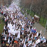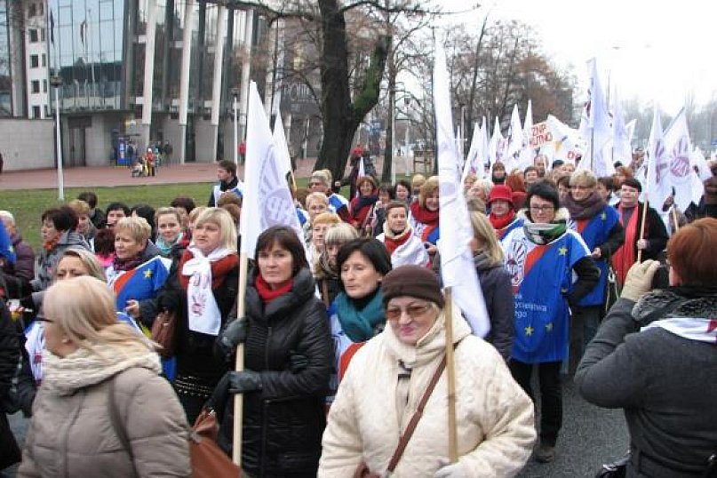 Nauczyciele z powiatu kutnowskiego uczestniczyli w sobotę 23 listopada w manifestacji, która przeszła głównymi ulicami Warszawy. Ponad 90- osobowa grupa strajkujących z powiatu kutnowskiego to członkowie ZNP (Oddział Międzygminny Kutno, Krośniewice, Żychlin, Gmina Kutno), którzy reprezentowali powiat w ogólnopolskiej manifestacji. Akcja rozpoczęła się o 11.00 i przebiegała bardzo spokojnie. W manifestacji udział wzięło ponad 20 tys. nauczycieli, pracowników oświaty i rodziców. Pikietowano przed Sejmem i resortem edukacji. Demonstracja zakończyła się przed gmachem kancelarii premiera. Tam też w imieniu związkowców petycję na ręce Macieja Jakubowskiego - wiceministra edukacji złożył Sławomir Broniarz - prezes ZNP. Maszerujący nieśli ze sobą flagi związkowe i transparenty, na których można było przeczytać: „Quo vadis oświato!?...” , Cud premiera do szkół nie dociera”, I PO dialogu”, „Po co dziatwie trud nauki, kiedy w cenie są nieuki”, „MEN - najpierw myśleć, potem reformować", „Dość złych zmian w oświacie”. Uczestnicy pikiety zaopatrzyli się w dzwonki, gwizdki i trąbki, kolorowe kamizelki związkowe oraz naklejki z hasłem „Protestuję, bo lubię uczyć". Jednym z postulatów ZNP jest wycofanie się przez rząd z planów prywatyzacji oświaty. Taka zmiana może doprowadzić – zdaniem S. Broniarza – do obniżenia jakości kształcenia. Prezes ZNP powiedział - Nie zgadzamy się na prywatyzację opieki nad dziećmi. Nie zgadzamy się na prowadzenie szkół przez osoby fizyczne i prawne. Nie zgadzamy się, aby rodzic był obarczany kosztami edukacji. Nie chcemy być zakładnikami w rękach samorządów. Nie godzimy się na to, żeby los nauczyciela zależał od wójta. Twarzą edukacji powinien być nauczyciel. Jutro 26 listopada dojdzie do spotkania przedstawicieli ZNP i MEN. Tematem dyskusji mają być, krytykowane przez ZNP, propozycje zmian w prawie oświatowym – w ustawie o systemie oświaty i Karcie nauczyciela. Jeśli skonfliktowane strony nie dojdą do kompromisu, ZNP będzie kontynuował akcję protestacyjną. Decyzje w tej sprawie zapadną w grudniu.