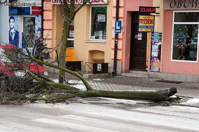 Od wczoraj w Kutnie zauważyć można liczne szkody zarówno mienia, jak i zieleni, będące skutkiem porywistego wiatru. Państwowa Straż Pożarna odnotowała od wczoraj do dziś rana pięć zdarzeń związanych z połamanymi konarami drzew i gałęziami zalegającymi na drogach i chodnikach. W Kutnie Straż Pożarna interweniowała od godz.12.00 5 grudnia do dziś do godz. 8.00 dwa razy na ul. Sowińskiego i ul. Kościuszki. W Suchodębiu gmina Łanięta interweniowała jednostka OSP Łanięta, w Głogowcu w gminie Kutno OSP Klonowiec usuwał skutki wichury oraz dziś około 7.30 w miejscowości Strzegocin gm. Kutno jednostka JRG usuwała z drogi nadłamane konary drzew. - Porywisty wiatry w powiecie kutnowskim jak na razie nie przyniósł większych strat. Nie ma osób poszkodowanych i nie zanotowaliśmy strat mienia - mówi kpt. Zdzisław Pęgowski, rzecznik Państwowej Straży Pożarnej w Kutnie. Zgłoszeń wciąż przybywa około godziny 10.15 przy pl. Wolności przewaliło się drzewo, tarasując w znaczymy stopniu jezdnię.