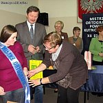 Wczoraj, w przeddzień Mikołajek w Zespole Szkół Nr 1 w Krośniewicach po raz dwunasty przeprowadzono konkurs „Mistrz Ortografii Powiatu Kutnowskiego”. Tradycji stało się zadość, gdyż dyktando wpisało się na stałe w kalendarz imprez organizowanych w powiecie. Organizatorem konkursu było Liceum Ogólnokształcące przy Zespole Szkół Nr 1 w Krośniewicach. Honorowy patronat nad imprezą objęły: Mirosława Gal – Grabowska, starosta kutnowski i Julianna Barbara Herman, burmistrz Krośniewic. Do rywalizacji stanęło 35 uczniów z 8 szkół: Zespół Szkół Nr 2 im. A. Troczewskiego w Kutnie, I Liceum Ogólnokształcące im. J. H. Dąbrowskiego w Kutnie, II Liceum Ogólnokształcące im. J. Kasprowicza w Kutnie, Zespół Szkół Nr 1 w Żychlinie, Zespół Szkół Nr 1 im. S. Staszica w Kutnie, Publiczne Gimnazjum SPSK w Kutnie oraz Liceum Ogólnokształcące i Gimnazjum im. R. Rembielińskich z Krośniewic. Autorką tekstu pt. „Wrócić do dzieciństwa” była Urszula Herłazińska, nauczyciel języka polskiego w ZS Nr 1 w Krośniewicach. Młodzież , która wzięła udział w dyktandzie „Mistrz Ortografii Powiatu Kutnowskiego” , przeszła eliminacje szkolne i zakwalifikowała się do etapu powiatowego. Prace sprawdzało jury w składzie: Maria Runińska, przewodnicząca, Urszula Herłazińska, Grażyna Modlińska, Małgorzata Przygodzka, Małgorzata Pęgowska i Julita Szczepankiewicz. Podczas oczekiwania na werdykt jury na zaproszonych gości czekał słodki poczęstunek. W tym roku „Mistrzem Ortografii Powiatu Kutnowskiego” została Daria Chmielecka z ZS Nr 2 im. A. Troczewskiego w Kutnie. W sumie zdobyła 96 punktów. Drugie miejsce zajął Konrad Kusiak z ZS Nr 1 im. S. Staszica w Kutnie, któremu do mistrzyni zabrakło zaledwie jednego punktu. Trzecie miejsce (92 pkt.) przypadło Karolinie Kłopotowskiej reprezentującej I LO im. J.H. Dąbrowskiego w Kutnie.