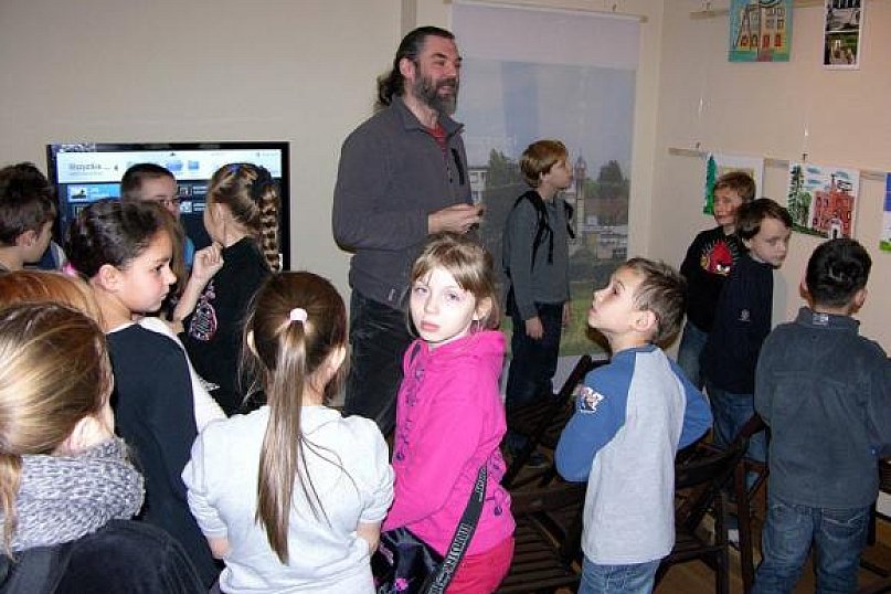 W czwartek 5 grudnia odbyło się w Dworku Modrzewiowym spotkanie z uczestnikami pleneru malarskiego, który miał miejsce na terenie miasta w lipcu, jako część Lata w Muzeum. Plener zorganizowany ze środków Muzeum Regionalnego w Kutnie oraz wystawa i czwartkowe spotkanie były kontynuacją projektu Pejzaż Rudymentarny. Autor projektu, Tomasz Czyżewski oprowadził zebranych gości po wystawie i opisał historycznie ważne miejsca, które malowali uczestnicy. Licznie stawili się uczniowie Szkoły Podstawowej nr 9 w Kutnie, których koleżanki Ela Wielec, Ala Sadowska i Karolina Pasiewicz wzięły udział w plenerze. Dzieci wraz z wychowawczynią Jolantą Dąbrowską, z zainteresowaniem wysłuchali opowieści i żywo reagowali na oglądane prace. Towarzyszyli im dorośli amatorzy malarstwa: Anna Waćkowska, Rafał Lewiński, Marcin Tomaszewski, Grzegorz Tomczak oraz Renata Kobus ze Środowiskowego Domu Samopomocy w Kutnie. Pozostali autorzy prezentowanych w Dworku prac, z różnych przyczyn nie mogli być z nami tego przedpołudnia. Czekają na nich, przygotowane dla wszystkich naszych malarzy, drobne upominki i zaproszenie do dalszej współpracy, a są to: Dawid Bednarek, Basia Czyżewska, Adrian Pietrzak, Kinga Sierocka i Kamil Pietrzak.