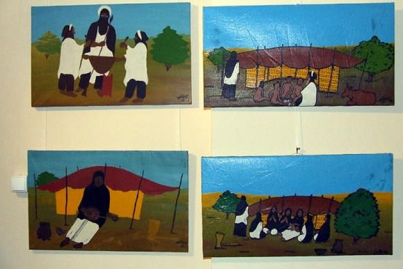 Dziś w Dwroku Modrzewiowym odbył się wernisaż wystawy malarstwa Rissa Ixy pt. Błękitni ludzie z Sahary i Sahelu. Organizatorem we współpracy z Łódzkim Domem Kultury jest Muzeum Regionalne w Kutnie. Obrazy tuareskiego artysty z Nigru pochodzą z prywatnej kolekcji etnologa Adama Rybińskiego, który opowiadał dziś na wernisażu o fenomenie Tuerega malarza naiwnego. Na początku wernisażu Grzegorz Skrzynecki, dyrektor Muzeum przekazał kwiaty i serdeczne życzenia sukcesów z okazji 60-lecia Łódzkiego Domu Kultury przedstawicielom instytucji, partnerowi wystawy. Doktor Adam Rybiński etnolog z Instytutu Studiów Regionalnych i Globalnych Wydziału Geografii i Studiów Regionalnych Uniwersytetu Warszawskiego od ponad 30 lat prowadzi badania nad kulturami ludów pasterskich mieszkających w Afryce Północnej i Zachodniej. Jest autorem książki „Tuaregowie z Sahary” i wielu artykułów na ich temat oraz laureatem aFrykasa Roku 2012 w kategorii nauka, nagrodę tę przyznała mu Fundacja „Afryka inaczej”. - Rissa Ixa pochodzi z plemienia pasterzy, wojowników i poetów. On natomiast zaczął rysować na piasku, a potem po śmierci ojca, kiedy również zachorowała matka, zawiózł ją do stolicy i tam już został i stawiał pierwsze kroki w tej sztuce. Nie chce jednak wyjawić kto go uczył, choć na pewno obserwował białych europejskich malarzy - opowiadał doktor Adam Rybiński. Rissa przedstawia na swoich obrazach przede wszystkim tradycyjne życie Tuaregów, czyli ludu pasterskiego berberyjskojęzycznego zamieszkującego Saharę Centralną i Południową i sąsiednie stepy Sahelu. Dziś lud ten jest muzułmanami, a w sztuce islamu przedstawienia figuralne są zakazane.