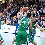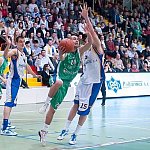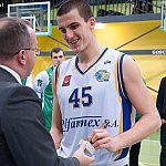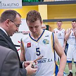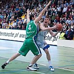 Mecz o pierwsze miejsce w Turnieju Intermarche Basket Cup na szczeblu PZKosz wygrał dziś w hali Szkoły Podstawowej nr 9 w Kutnie zespół Jarosława Krysiewicza. Tym samym zrewanżował się zespołowi z Krosna za ubiegłoroczny Final Four na szczeblu PZKosz. Od pierwszych minut pierwszej kwarty zawodnicy Polfarmexu mocno naciskali na przeciwnika, ale brakowało im trochę skuteczności. Szybko jednak się to zmieniło. Świetna seria punktowa Krzysztofa Jakóbczyka (3 pkt.), Huberta Pabiana (2x3 pkt.) i Norberta Kulona (2 pkt.) doprowadziła do 11 punktowej przewagi. Zawodnicy z Krosna zaczęli gonić wynik, ale na przeszkodzie stanęła świetna obrona zespołu z Kutna. Na koniec pierwszej kwarty udało im się mozolnie odrobić kilka punktów. Goście zbliżyli si ę zatem do remisu lecz nie udało się im przekroczyć tej granicy. Z każdą kolejną minutą drugiej kwarty Polfarmex odrabiał przewagę, doprowadzając na koniec tej części gry do 14 punktowej różnicy. Trzecia kwarta była najbardziej wyrównana, zespół z Krosna rzucił się w pogoń za gospodarzami. Zacięta walka na parkiecie była bardzo widowiskowa. Podopiecznym trenera Jarosława Krysiewicza udało się utrzymać przewagę wypracowaną w drugiej kwarcie.