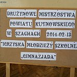W czwartek, 13 lutego w Szkole Podstawowej nr 6 im. Marii Skłodowskiej-Curie w Kutnie odbył się drużynowy turniej szachowy o awans do zawodów rejonowych. Organizatorem był Miejski Ośrodek Sportu i Rekreacji w Kutnie reprezentowany przez Marka Witkowskiego, który przygotował dyplomy dla zespołów i puchar dla najlepszej drużyny ze szkół podstawowych i z gimnazjów. Współorganizatorem była Szkoła Podstawowa nr 6. Zawody prowadził i sędziował kierownik świetlicy Wiesław Zwarycz, który zaprosił reprezentacje wszystkich kutnowskich gimnazjów i szkół podstawowych, oraz placówek oświatowych spoza Kutna z tradycjami szachowymi. Do zawodów zgłosiły się cztery drużyny w kategorii szkół podstawowych i trzy zespoły gimnazjalne. Wśród podstawówek zwyciężyła debiutująca Publiczna Katolicka Szkoła Podstawowa im. Św. Stanisława Kostki w Kutnie (Damian Półtorak, Piotr Wielgosz, Kacper Stoliński i Mira Jabłońska - pod opieką siostry Agnieszki Ozimek). Na drugim miejscu, z identycznym dorobkiem punktowym, uplasowała się, broniąca tytułu mistrza powiatu, Szkoła Podstawowa Nr 6 im. Marii Skłodowskiej-Curie w Kutnie (Paweł Kwiatkowski, Kacper Szerszeń, Maciej Galant i Marcelina Czajkowska – pod opieką Wiesława Zwarycza). Zadecydował lepszy wynik na wyższej szachownicy. Na podium znalazła się też druga reprezentacja SP nr 6 (Konrad Zarzycki, Kamil Zarzycki, Filip Znajewski i Barbara Zawierucha – opiekun W. Zwarycz) przed ekipą ze Szkoły Podstawowej nr 4 im. Mikołaja Kopernika (Franciszek Mazur, Jakub Sobolewski, Jakub Ambroziak i Katarzyna Poznańska – nauczyciel Michał Szumiński). Tutaj również zadecydował wynik na pierwszej szachownicy. Zdecydowanie najlepszą szkołą ponadpodstawową okazało się Gimnazjum im. ks. Stanisława Konarskiego ze Strzelec (Jakub Żandarowski, Jakub Chodorowski, Kacper Brzozowski i Natalia Kaźmierczak – pod opieką Pawła Kacprzaka), zaś o zdobyciu drugiego miejsca zadecydowała różnica 0,5 pkt. na korzyść Gimnazjum nr 2 im. Marszałka Józefa Piłsudskiego w Kutnie (Filip Kucharski, Michał Mikołajczyk i Kacper Stoś – opiekun Przemysław Kubicki), które pomimo braku zawodniczki pokonało Gimnazjum im. Rodziny Rembielińskich z Krośniewic (Aleksander Kruszyński, Piotr Marciniak, Mikołaj Kaczuba i Aleksandra Łuczak – z Julitą Szczepankiewicz).