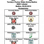 W miniony weekend w hali przy Gimnazjum w Bedlnie odbył się turniej o Puchar Wójta Gminy Bedlno dla najmłodszych adeptów piłki nożnej, którzy dopiero rozpoczynają swoją przygodę z piłką. Głównym celem zawodów była dobra zabawa i możliwość sprawdzenia swoich umiejętności na tle innego zawodników. Do Bedlna zawitały akademie piłki nożnej z Łodzi – AF Tomasza Hajto, Koluszek – ARPiT Lwy i Tygrysy, Łowicza- Pelikan, Kutna – AP Młode Lwy oraz AF Tomasza Hajto, Zgierza – Włókniarz I i II oraz dwie drużyny gospodarzy – Młode Byki i Krasnale. Organizatorzy aby podkreślić rolę dobrej zabawy postanowili nie prowadzić ostatecznej klasyfikacji drużyn. Każdy zespół otrzymał puchar ufundowany przez Wójta Gminy Krzysztofa Kołacha, a wszyscy uczestnicy turnieju i opiekunowie zostali nagrodzeni pamiątkowymi medalami.