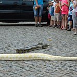 Na Placu Marsz. J. Piłsudskiego węże kusiły kutnian i kutnianki. Jabłek może i nie oferowały, lecz publiczność chętnie brała je w ramiona. Najniebezpieczniejsza z trójki zaprezentowanych przez fakira Radamesa gadów okazała się albinoska pytona tygrysiego Lena, gotowa zapolować na gołębia, dlatego szybko wróciła do kufra. Na szyi poskramiacza wisiał spokojny boa Kalif. Natomiast zgromadzeni kutnianie mieli okazję bliżej zapoznać się z pytonem tygrysim Aleksandrem, nieustannie pokazującym język.