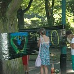 W sobotę w parku Traugutta w Kutnie odbyły się otwarte zajęcia street art'u w ramach programu STREET ART - SZTUKA MIASTA. EDUKACJA MIĘDZYPOKOLENIOWA. Kilkanaście osób, dzieci i młodzieży tworzyło szablony, prace na stretchu, tekturze i płytach OSB. Odbyła się również gra miejska - wszystkim uczestnikom udało się znaleźć i skompletować fragmenty piosenki Kabaretu Starszych Panów. Projekt realizuje Łódzki Dom Kultury.
