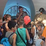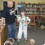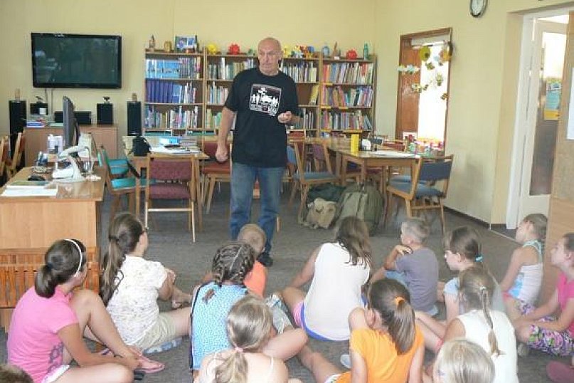 Minął wycieczkowy tydzień Wakacji w Bibliotece pod hasłem „Kiedy dziadkowie byli dziećmi”. W trakcie zajęć dzieci z zainteresowaniem wysłuchały opowieści Wiesława Paluchowskiego - wiceprezesa Stowarzyszenia Historycznego Pułk 37, który zaprezentował dzieciom plecaki wojskowe z I wojny światowej, angielski plecak lotniczy z II wojny światowej oraz plecak współczesny. Dużą atrakcją dla dzieci była wycieczka do Dworku Modrzewiowego, w którym Bożena Gajewska - prezes TPZK opowiedziała dzieciom historię budynku oraz historię TPZK. Dzieci obejrzały kroniki stowarzyszenia założonego w 1972r. oraz zwiedziły ogród, w którym rosną róże Kutno, Maryla, Kopernik.