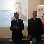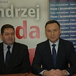 Andrzej Duda, kandydat Prawa i Sprawiedliwości na prezydenta Polski odwiedził dziś powiaty kutnowski i łęczycki (38 i 39 powiat w kraju) w ramach spotkań z wyborcami. Europoseł zamierza odwiedzić wszystkie powiaty i spotkać się z tymi Polakami, którzy chcą zmiany w zarządzaniu Polską. W Wyższej Szkole Gospodarki Krajowej w Kutnie odbyła się najpierw krótka konferencja prasowa, na której Andrzej Duda odpowiedział niestety tylko na trzy pytania. - Jeszcze przed ogłoszeniem terminu wyborów skoro już moja kandydatura została wyłoniona przez Prawo i Sprawiedliwość, spotykam się z mieszkańcami całej Polski, będę w każdym powiecie w kraju. Uważam, że kandydat na prezydenta Polski powinien spotykać się z Polakami i rozmawiać z nimi o ich problemach - mówił na konferencji Andrzej Duda. - Na spotkaniach będę mówił o tym jaki jest mój pomysł i moja wizja na wewnętrzną i zewnętrzną politykę Polski. Przez siedem lat rządów Platforma Obywatelska nie zrealizowawszy obietnic pozbawiła młodych Polaków nadziei na rozwój. Zmiana musi nastąpić abyśmy mogli realizować politykę rozumianą jako rozsądną troskę o wspólne dobro. Marcin Mastalerek rzecznik prasowy PiS dodał, że w gminach i powiatach powstaną wkrótce sztaby wyborcze kandydata, aby zapracować wspólnie na sukces Andrzeja Dudy. Terminy wyborów brane pod uwagę to 10 lub 17 maja. - Moja decyzja o kandydowaniu zapadła kiedy pierwszy raz powiedziano mi, że moja kandydatura jest rozważana przez władze partii, a w listopadzie ubiegłego roku została przyjęta przez zarząd PiS - odpowiadał na pytania Andrzeja Bieńkowskiego z Powiatowego Życia Kutna. - Jestem prawnikiem, pochodzę z Krakowa, jestem mężem nauczycielki języka niemieckiego, ojcem prawie 20-letniej córki, w 2004 roku obroniłem doktorat, pracowałem na uniwersytecie. W 2006 roku zostałem wiceministrem sprawiedliwości, w 2011 roku posłem na Sejm, a w 2014 posłem do Parlamentu Europejskiego. W sali wykładowej WSGK bardzo licznie zebrali się sympatycy i członkowie PiS, nie zabrakło też mieszkańców, którzy po prostu przyszli wyrobić sobie zdanie o kandydacie. Zgromadzonych powitał Konrad Kłopotowski, przewodniczący powiatowych struktur partii, wśród gości towarzyszących Andrzejowi Dudzie byli Senator RPPrzemysław Błaszczyk, Posłowie na Sejm RP Marek Matuszewski, Piotr Polak, Radny Województwa Łódzkiego Błażej Spychalski. - Nadchodzi dla naszego państwa niezwykle ważny czas. 2015 rok to rok podwójnych wyborów, prezydenckich i parlamentarnych. Trzeba zwłaszcza teraz rozmawiać o Polsce, o polskim społeczeństwie, o tym w jakiej jesteśmy sytuacji, o tym jak patrzymy na Polskę z perspektywy ostatnich 7 i 25 lat. Koalicja rządząca PO -PSL oraz prezydent Bronisław Komorowski mówią, że ostatnie 25 lat Polski to jej wielki sukces. Proszę Państwa spójrzmy na to obiektywnie. Obiecywano nam, że nie będzie problemu z życiem, wolnością, dobrami. A tu w zeszłym roku 80% maturzystów w ogólnopolskiej sondzie odpowiedziało, że nie widzi swojej przyszłości w Polsce. To jest bardzo młode pokolenie pozbawione już nadziei. Wielkim zadaniem jest przywrócić nadzieję, nie tylko tym młodym ludziom, również ich rodzicom i tym wszystkim, którzy mają poczucieże się źle w Polsce dzieje- mówił Andrzej Duda.- Jeśli tutaj ich zabraknie, jeśli wyjadą pod opiekę innych rządów, chcę to bardzo mocno zaakcentować, to znaczy, że inne kraje, inne rządy dają możliwość rozwoju, stabilizacji. Polsce potrzebna jest zmiana władzy, rozumianej jako rozsądna troska o wspólne dobro. Muszą do władzy dojść ludzie, którzy chcą nią rządzić uczciwie, którzy mają ambicję przywrócenia Polski na drogę prawdziwego rozwoju. Władza, która rządzi w Polsce od siedmiu lat całkowicie się skompromitowała. Większości obietnic nie dotrzymała. Za to bardzo sprawnie wypełniła, nie ostrzegając Polaków, a co było ciosem, swoje plany. A mianowicie podwyższenia wieku emerytalnego do 67 lat. Tak zdecydował rząd Donalda Tuska, koalicja PO-PSL i Bronisław Komorowski, prezydent, podpisując tę ustawę. To jest polityka antyspołeczna.