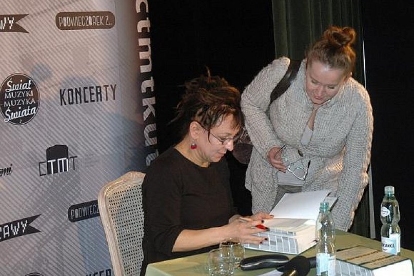 Wczoraj w Centrum Teatru Muzyki i Tańca w Kutnie odbyło się pierwsze z nowego cyklu pt. Między słowami spotkanie z twórcami. Pomysłodawczynią i prowadzącą cykl spotkań ze znakomitościami literatury polskiej jest Aleksandra Kołodziejek, a jej pierwszym gościem była pisarka Olga Tokarczuk. Prowadzone przez Kołodziejek z dużą swobodą spotkanie było niewątpliwie zachętą do sięgnięcia po ostatnią książkę pisarki "Księgi Jakubowe" (Wydawnictwo Literackie). To ona właśnie była wielką, rewelacyjną bohaterką wieczoru. Do Rohatyna na Podolu w 1752 roku przybywają kasztelanowa Katarzyna Kossakowska i poetka Elżbieta Drużbacka. Jednym z gości na powitalnej kolacji jest miejscowy proboszcz Benedykt Chmielowski, autor pierwszej polskiej encyklopedii. Ksiądz i poetka niemal natychmiast znajdują wspólny język. Potem będą pisać do siebie długie listy. Na Podolu pojawia się też charyzmatyczny Żyd - Jakub Lejbowicz Frank, który zaczyna głosić idee dzielące społeczność żydowską. Jedni uważają Franka za heretyka, inni za Mesjasza. Zdobywa on oddanych sobie uczniów i jego sekta, ruch, idea wkrótce może odmienić bieg historii. Z historii, której uczymy się w szkołach niewiele wiemy o frankistach. Na szczęście ich losy i wpływ na świat możemy poznać nie tylko z naukowych pozycji, ale i właśnie z epickiej historycznej powieści Tokarczuk. Aleksandra Kołodziejek na początku rozmowy wspomniała o przeprowadzanym wśród odbiorców kultury w Kutnie sześć lat temu plebiscycie, to właśnie autorka m.in. "Biegunów" czy książki "Prawiek i inne czasy" została jego główną laureatką. Pożądana przez mieszkańców Kutna była tak długo, ile właśnie pisała swoją wielką powieść historyczną o losach Jakuba Franka. Jak wczoraj powiedziała pisarka, te lata musi teraz nadrabiać, bo skupienie na pisaniu Ksiąg spowodowało jej totalne wyłączenie ze świata zewnętrznego. - Ponad roku temu skończyła pani pisać "Księgi Jakubowe", przez ten czas zapewne zmieniła pani stosunek do niej. Jaka to jest teraz relacja, czy jest pani od niej uwolniona? Czy jest pani już skupiona na nowych rzeczach? - pytała prowadząca spotkanie. - Jestem w stanie przejściowym. Z radością zapominam jej szczegóły. Cieszę się, że ten moment uwolnienia nadchodzi, bo przez te lata to nie tylko była intensywna praca, bo ja pisałam po kilkanaście godzin dziennie, ale też miałam jakiś rodzaj obsesji. Nie mogłam na przykład czytać żadnych cudzych powieści, interesowało mnie tylko to co związane z XVIII wiekiem, z Żydami czyli rzeczy które kręciły się wokół powstającej książki. Rzeczywiście gdyby trwało to dłużej bałabym się o swój stan zdrowia psychicznego - odpowiedziała Olga Tokarczuk. - Cieszę się, że Księgi powoli odchodzą ode mnie. Kiedy jechałam do Państwa szeroką autostradą, gdzie jest mało bodźców, zaczęłam czuć, że już mnie interesuje coś innego, że coś innego wymyślam. Trochę się czuję, jakbym wróciła po takim długim odlocie, po długiej chorobie. To zapominanie jest zdrowym objawem. Do poprzednich książek mam podobny stosunek, one po pewnym czasie wyraźnie odchodzą ode mnie. - A moment kiedy kończyła pani Księgi był momentem ulgi czy żalu? - pytała Aleksandra Kołodziejek. - Był to moment ulgi, pod koniec pisania świadomie już nie rozwijałam wątków. Zostało tam jeszcze wiele takich punktów węzłowych, które można było pociągnąć. Kusiło mnie rozwinąć na przykład wątek żony Mickiewicza, pochodzącej z frankistów, wkroczyć wyraźniej w XIX wiek, ale jednocześnie czułam wewnętrzny opór i byłam zmęczona - mówiła pisarka. - Przekroczyłam o rok termin wydania tej książki więc byłam też już naciskana przez wydawnictwo. Po miesięcznym urlopie jaki zrobiliśmy sobie z mężem, czekali już na mnie redaktorzy, konsultanci, korekta, po kilku miesiącach dobieraliśmy ilustracje, które wcześniej zebrałam. Zaczęła się również praca z Alkiem Radomskim, który książkę składał. Alek jest tak skromny, że nawet nie pozwolił umieścić w książce swojego nazwiska, a znakomicie edytorsko tę książkę zrobił, pięknie dobrał czcionki, nawiązując do baroku, umiejętnie powkładał ilustracje.