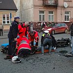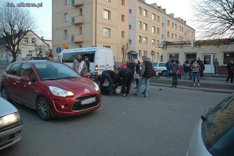 Dziś o godz. 17.00 na ulicy 29 Listopada w Kutnie doszło do wypadku, w którym poszkodawny został młody motocyklista. Świadkowie zdarzenia zabezpieczyli najpierw miejsce wypadku pomagając kierowcy, aż do przyjazdu karetki pogotowia. Następnie przyjechała Policja i Straż Pożarna. Kierowca motocykla zaczepił o tył zawracającego z przystanku na 29 Listopada busa. Rozległ się huk i młody mężczyzna uderzył z impetem o jezdnię. Na szczęście miał kask. Pogotowie Ratunkowe zabrało poszkodowanego do kutnowskiego szpitala. - Kierujący busem 47-letni mieszkaniec powiatu kutnowskiego wykonując manewr zawracania z zatoki autobusowej przy przystanku uderzył w motocykl yamaha. Kierował nim 29-letni mieszkaniec Kutna - mówi asp. Emil Kowalski z Komendy Powiatowej Policji w Kutnie.