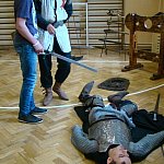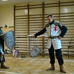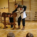 W środę uczniowie Szkoły Podstawowej im. Kornela Makuszyńskiego w Strzegocinie uczestniczyli w wyjątkowych zajęciach. Prowadzili je dla nas członkowie grupy artystycznej Rekonstrukto. Ta żywa lekcja historii pozwoliła nam poznać bliżej życie ludzi średniowiecza. Dowiedzieliśmy się jak wyglądało pasowanie na rycerza i kto nim mógł zostać. Przymierzając zbroje, biorąc w rękę miecz, każdy mógł poczuć się jak prawdziwy rycerz. Duże zainteresowanie wzbudziły… narzędzia tortur! Nie brakowało chętnych do eksperymentowania z nimi.