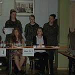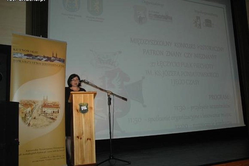 Rozpoczął się finał czwartego już Międzyszkolnego Konkursu Historycznego Patron znany czy nieznany? Tym razem uczniowie z powiatu kutnowskiego mają wykazać się wiedzą na temat 37 Łęczyckiego Pułku Piechoty im. Ks. J. Poniatowskiego. Tegorocznymi organizatorami są: Kutnowskie Towarzystwo Historyczne oraz I LO PUL im. 37 Łęczyckiego PP. Organizacje finału konkursu wspierają: Stowarzyszenie Pułk 37 i Centrum Teatru Muzyki i Tańca. Dziś w konkursie bierze udział dziewięć drużyn: Gimnazjum nr 2 im. Marszałka Józefa Piłsudskiego w Kutnie Aleksandra Wolczak Piotr Florczak p.Juliusz Sieradzon Rezerwowy Mateusz Karolak, Krzysztof Strzelec p. Robert Małachowski Gimnazjum nr 3 im. Henryka Sienkiewicza w Kutnie Zuzanna Staniszewska Zuzanna Woźniak p.Grażyna Grobelska Rezerwowy Weronika Mirowska p.Grażyna Grobelska I LO im. Generała JanaHenryka Dąbrowskiego Przemysław Rył Dominik Szczesiak p. Przemysław Zawadzki II LO im. Jana Kasprowicza Patryk Pieniążek Michał Saczuk p.Artur Ciurlej Rezerwowy Justyna Miszczak p.Artur Ciurlej ZS Nr 1 w Krośniewicach Natalia Starosta Magda Walczak p.Renata Bulewicz-Garstka Rezerwowy Mateusz Wojciechowski p.Renata Bulewicz-Garstka ZS Nr 1 im. Stanisława Staszica w Kutnie Sylwia Gawenda Małgorzata Rogozińska p. Paweł Babecki Rezerwowy Jakub Słoma p. Paweł Babecki ZSZ Nr 2 im. Dra Antoniego Troczewskiego Grzegorz Kozarski Kasjan Czaja p.Rafał Taglewski Rezerwowy Krystian Błaszczyk p.Grzegorz Wojtasiak ZS Nr 3 im. Władysława Grabskiego Damian Święcki Olga Piątkowska p.Iwona Smolińska Rezerwowy Przemysław Antczak p. Piotr Bielicki I LO PUL im. 37 Łęczyckiego Pułku Piechoty Anita Szczech Klaudia Brząkała p.Grażyna Grobelska Rezerwowy Marta Michalak p.Grażyna Grobelska. Finał swoją obecnością zaszczycili Artur Gierula, członek zarządu powiatu, Jerzy Pawlak, dyrektor Wydziału EKiS Starostwa Powiatowego, Anna Michalska, inspektor z Urzędu Miasta Kutna. - Witam was na intelektualnej bitwie. Jesteśmy chyba jedynym miastem w Polsce, które ma taki konkurs, chwała za to pomysłodawcom Kutnowskiemu Towarzystwu Historycznemu - mówił ppłk dr inż. Remigiusz Wiśniewski. - Dzięki uczestnictwu rekonstruktorów ze Stowarzyszenia Historycznego Pułk 37 będziemy mogli zmierzyć się z zadania praktycznymi.