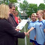 Wczoraj w Gimnazjum nr 3 im. Henryka Sienkiewicza w Kutnie odbył się turniej piłki nożnej dziewcząt „Trójka Cup”, zrealizowany w ramach Kutnowskich Grantów Oświatowych „Sięgaj, gdzie wzrok nie sięga” pod patronatem Prezydenta Miasta Kutno. W turnieju brały udział dziewczęta z kutnowskich szkół gimnazjalnych: Gimnazjum nr 1 im. Adama Mickiewicza, Gimnazjum nr 2 im. Marszałka Józefa Piłsudskiego oraz Gimnazjum nr 3 im. Henryka Sienkiewicza. Celem tych zawodów była popularyzacja piłki nożnej wśród młodzieży, jak również dostarczenie radości i satysfakcji wynikającej z rywalizacji zgodnie z zasadami fair-play oraz kształtowanie wartości etyczno- moralnych obowiązujących w sporcie. Wyniki poszczególnych spotkań prezentują się następująco: Gimnazjum nr 3- Gimnazjum nr 2: 4:0 Bramki: Aleksandra Kucharska, Natalia Kuśmider (2), Małgorzata Miller. Gimnazjum nr 2- Gimnazjum nr 1: 1:1 Bramki: Angelika Jóźwiak- Klaudia Paradowska. Gimnazjum nr 3- Gimnazjum nr 1: 3:0 Bramki: Aleksandra Kucharska, Małgorzata Miller, Sabrina Stasiak.