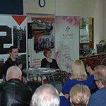 Dzisiaj o godz. 18.00 w Miejskiej i Powiatowej Bibliotece Publicznej w Kutnie odbyło się spotkanie autorskie z Rafałem Cichowskim, kutnianinem, autorem książki "2049". Spotkanie prowadziła Paulina Matysiak, koleżanka pisarza ze szkolnej ławki z II LO im. J. Kasprowicza w Kutnie. Rafał Cichowski na co dzień jest copywriterem w jednej z warszawskich agencji reklamowych, a "2049" jest jego pierwszą wydaną książką, a to było jego pierwsze spotkanie autorskie. Cieszy, że przybyło na nie grono tak liczne, jak na spotkanie z Andrzejem Sapkowskim. Cichowski opowiedział jak wyobrażał sobie swoje pierwsze spotkanie, kiedy dawno temu zaczynał pisać. - Miałem taki sen, że siedzę na kanapie u Wojewódzkiego. Szczerze mówiąc, gdyby ktoś mi trzy lata temu powiedział, że na spotkanie przyjdzie dużo ludzi, nie uwierzyłbym - powiedział Cichowski. Duża część spotkania była poświęcona procesowi twórczemu, warsztatowi i genezie pomysłu na "2049". Rafał Cichowski stwierdził, że autor zawsze gdzieś się pojawia w tekście, a w jego powieści nie brakuje wątków biograficznych, a także nawiązań do języka staroangielskiego. - Cały proces pisania trwał cztery i pół roku, z tym że sensu stricto pisanie dałoby się zmieścić w parę miesięcy, ponieważ tę książkę zaczynałem trzy razy i nie kończyłem. Wyrzucałem kolejne rzeczy, które mi się nie podobały. Później napisałem książkę "Cztery" i włożyłem ją do szuflady. Potem stwierdziłem, że jednak wrócę do tego pomysłu i chciałem go skończyć, bo wydawało mi się, że miał potencjał i chciałem napisać coś co nie będzie osadzone w czasach teraźniejszych tylko trochę wybiegało w przyszłość - mówił autor.