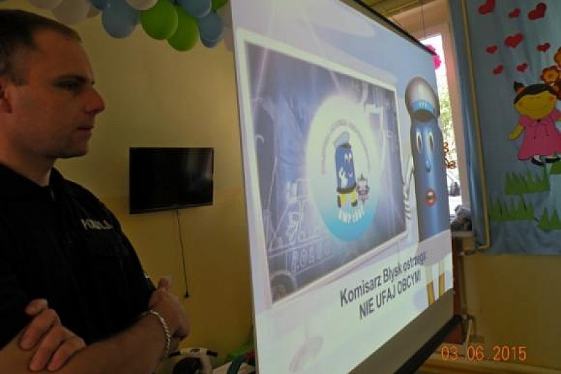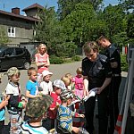 Wczoraj punkt przedszkolny „Kolorowy Świat” w Bielawkach odwiedzili funkcjonariusze Wydziału Ruchu Drogowego Komendy Wojewódzkiej Policji w Łodzi i Powiatowej Komendy Policji w Kutnie. To zakończenie jednego z wcześniej już rozpoczętego zadania w ramach konkursu „Bezpieczne Dziecko – Bezpieczne Przedszkole”. Spotkanie dotyczyło uzupełnienia zdobytej wiedzy i pozyskania nowych informacji na temat bezpieczeństwa poruszania się po mieście i drodze, kontaktów z nieznajomymi, podstawowych zagadnień ruchu drogowego i przechodzenia przez jezdnię, znajomości znaków oznaczających niebezpieczne sytuacje i miejsca. Część merytoryczna miała wprowadzić dzieci w tajniki wiedzy na powyższy temat a część praktyczna polegała na sprawdzeniu zdobytej wiedzy podczas dzisiejszego i wcześniejszych spotkań dotyczących tego tematu. Dzieci bezbłędnie wypełniały ćwiczenia zarówno w części teoretycznej, jak i praktycznej. Miasteczko Ruchu Drogowego wywarło niesamowite wrażenie i pozwoliło na naukę poprzez świetną zabawę.
