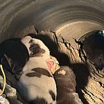 Dzięki wspólnym działaniom wolontariuszy oraz OSP Krośniewice, udało się złapać bezdomną suczkę wraz z jej czterema szczeniakami. Sunia urodziła swoje maluchy w przepuście w Krośniewicach, dlatego akcja nie była łatwa — konieczna była pomoc strażaków. Suczka błąkała się już 4 lat, często rodziła.