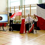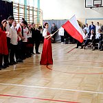 Szkolny Teatrzyk „Radośni” zaprosił społeczność szkolną do wspólnego śpiewania Mazurka Dąbrowskiego oraz apelu okolicznościowego pt. „Niepodległa 2023”
