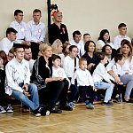 Starosta Kutnowski Daniel Kowalik grupie dziewięciorga dzieci, uczniów klasy 4 Ośrodka, wręczył laptopy, a następnie wraz z uczniami wsadził dwa drzewa upamiętniające wydarzenie.