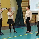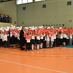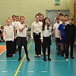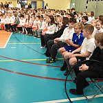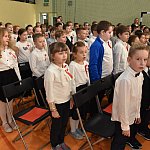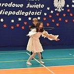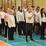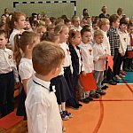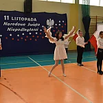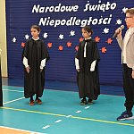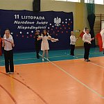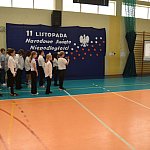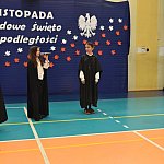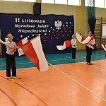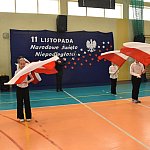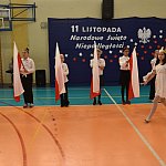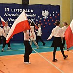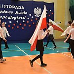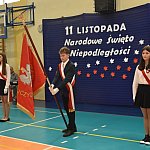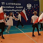 Uczniowie klas 0-III utworzyli z białych i czerwonych elementów wielką flagę państwową. O godzinie 11.11 społeczność szkolna odśpiewała   4 zwrotki Mazurka Dąbrowskiego w ramach akcji „Szkoła do Hymnu”. Uczniowie klas piątych przedstawili program artystyczny-montaż słowno-muzyczny. Na koniec uroczystości śpiewano wspólnie pieśni patriotyczne.