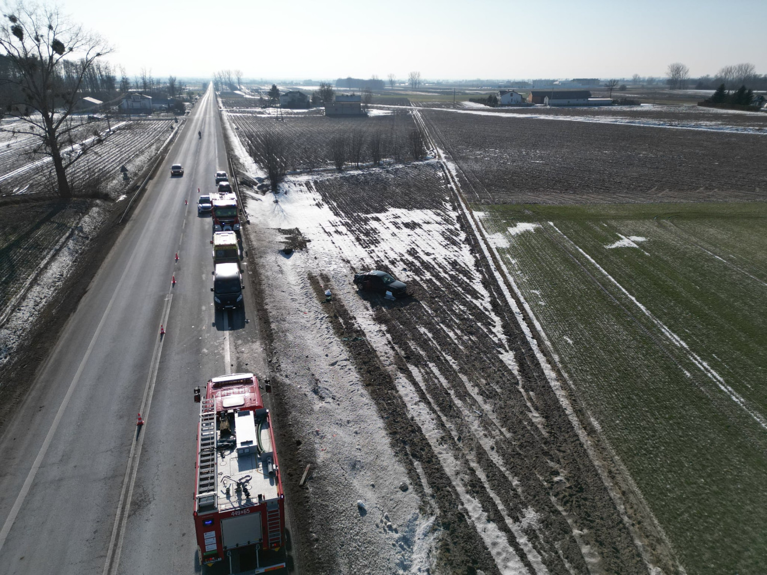Samochód osobowy z nieustalonych dotąd przyczyn wypadł z drogi, dachował i wylądował w polu. Na miejscu służby stwierdziły zgon 19-letniej kobiety. Dwaj mężczyźni w wieku 20 i 22 lat zostali ranni i przetransportowani do szpitala.
