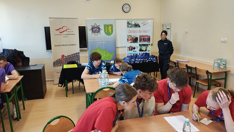 - W czwartek, 26 lutego kutnowscy policjanci przeprowadzili powiatowe eliminacje konkursu dla uczniów szkół średnich o Puchar Komendanta Wojewódzkiego Policji w Łodzi. W eliminacjach udział wzięli uczniowie z I Liceum Ogólnokształcącego imienia Generała Dąbrowskiego w Kutnie, I Liceum Ogólnokształcące imienia 37 Łęczyckiego Pułku Piechoty w Kutnie, Zespołu Szkół Kształcenia Rolniczego imienia Macieja Rataja w Mieczysławowie oraz Zespołu Szkół Zawodowych numer 2 imienia Troczewskiego w Kutnie.Zasady przejścia konkursu odwzorowane są na procedurze rekrutacji do pracy w Policji. Młodzież biorąca udział w testach przygotowuje się jak przyszli kandydaci do naboru w policyjne szeregi. Komisja czuwająca nad prawidłowym przebiegiem konkursu składała się z 3 członków: Zastępcy Naczelnika Prewencji Komendy Powiatowej Policji w Kutnie, Asystenta do spraw Profilaktyki Społecznej Komendy Powiatowej Policji w Kutnie oraz Oficera Prasowego. Łącznie o Puchar Komendanta rywalizowały 4, czteroosobowe drużyny, każda składająca się z dwóch uczennic i dwóch uczniów - informuje aspirant Daria Olczyk.