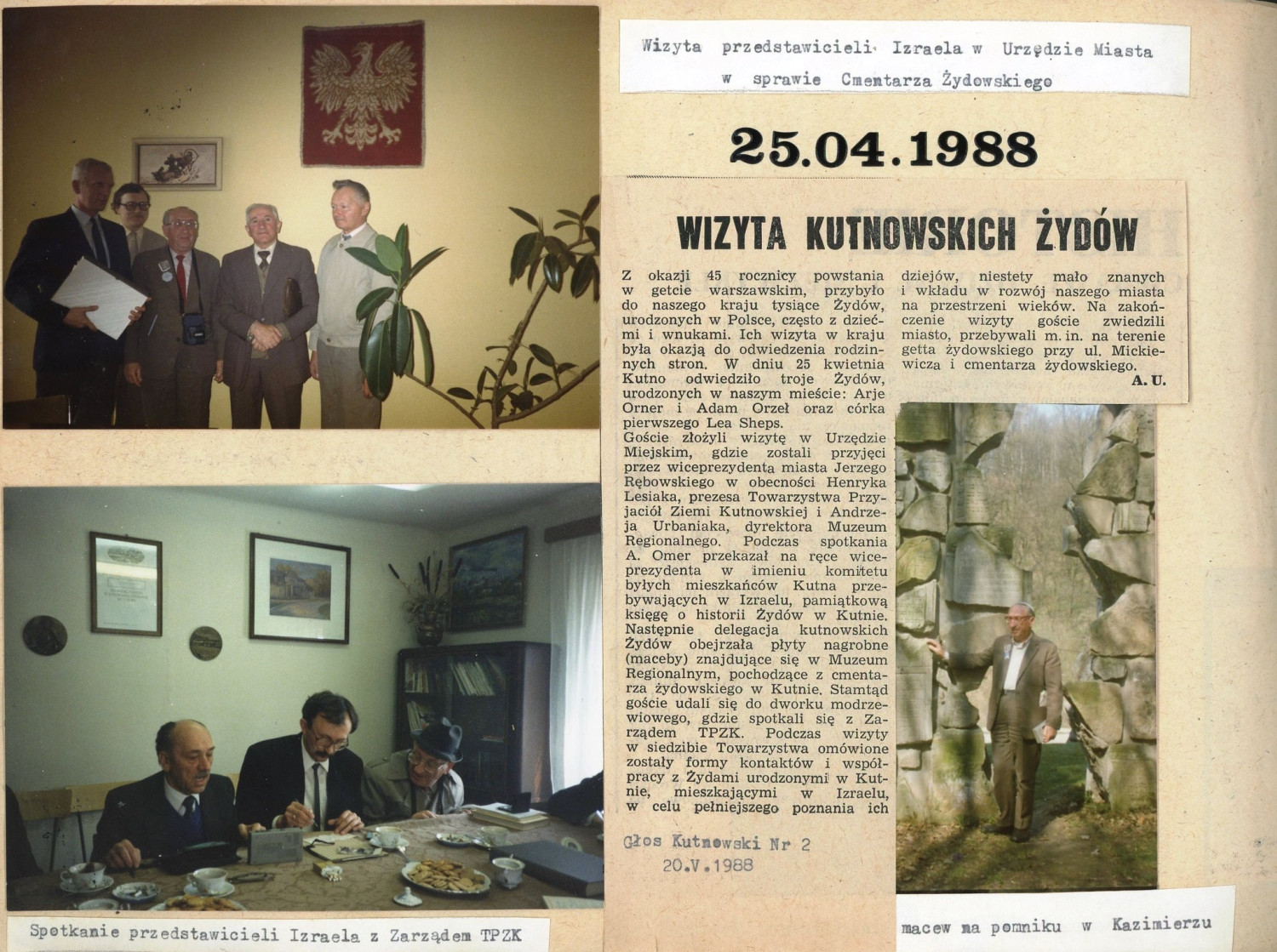 38 lat temu, 25 kwietnia 1988 roku, odwiedziło Kutno – miejsce swojego urodzenia − dwóch dawnych mieszkańców wyznania mojżeszowego żyjących w Izraelu − Arje Orner, który przyjechał z córką Leą Sheps, i Adam Orzeł. Podobnie jak kilkutysięczna rzesza Żydów urodzonych w Polsce, przybyli na obchody 45. rocznicy wybuchu powstania w getcie warszawskim i przy okazji odwiedzili rodzinne miasto.