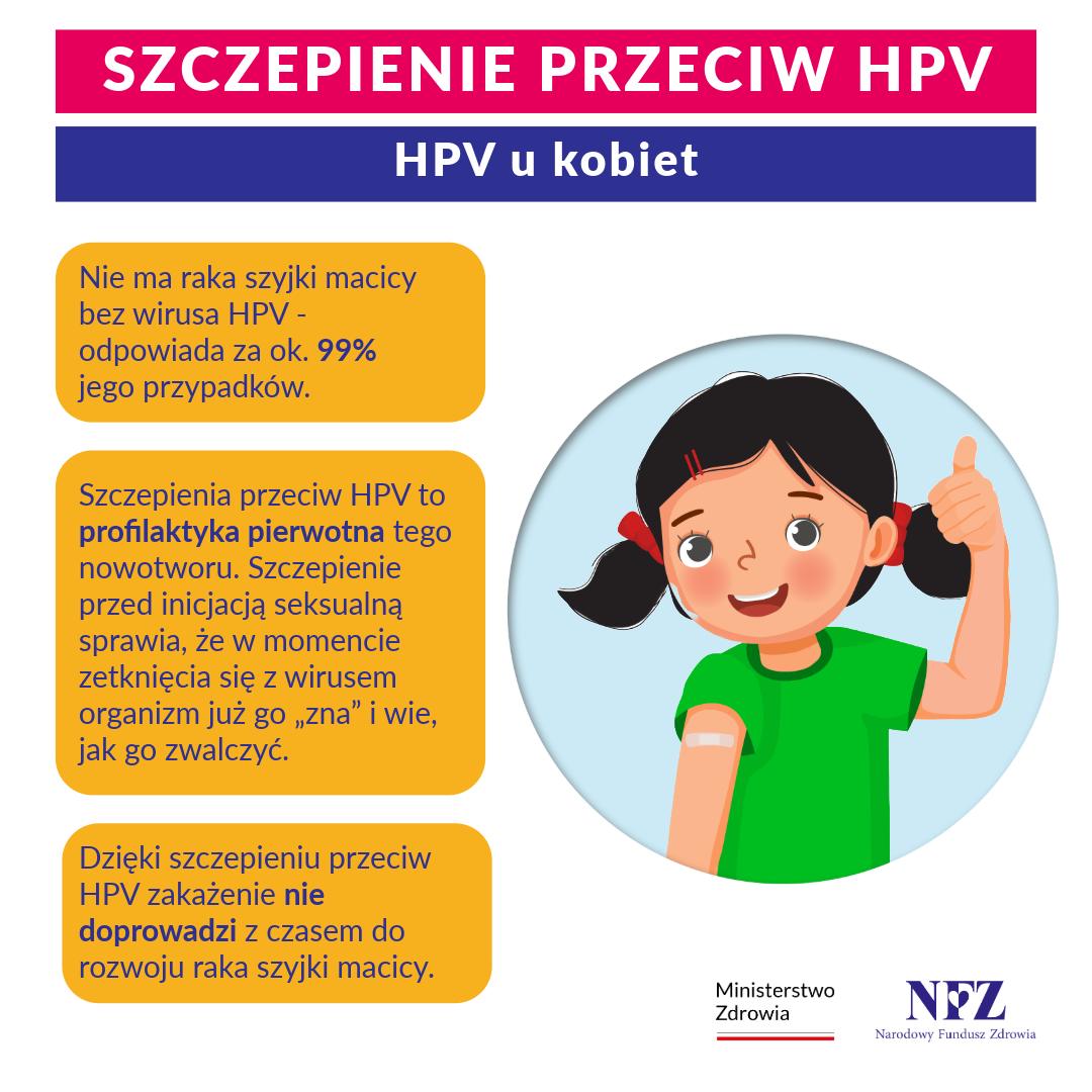 HPV, czyli wirus brodawczaka ludzkiego to zakaźny wirus, który odpowiada za 95% wszystkich przypadków raka szyjki macicy a także raka pochwy i sromu u kobiet. Zakażenia HPV dotyczą obu płci – HPV powoduje raka prącia u mężczyzn, a także raka odbytu, jamy ustnej, nosogardzieli, nasady języka i migdałków, okolic głowy i szyi u obu płci.