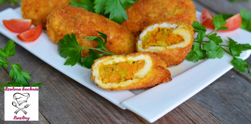 Tradycyjny kotlet sporządzony z roztłuczonej piersi z kurczaka nadziewanej warzywnym farszem z delikatnie słodkiej marchewki i lekko ostrego pora, który jest wyśmienitą w smaku alternatywą dla klasycznego de vollaile’a. Ewelina Pędzikowska poleca obiad na nadzielę http://szalonakuchniaeweliny.bloog.pl/